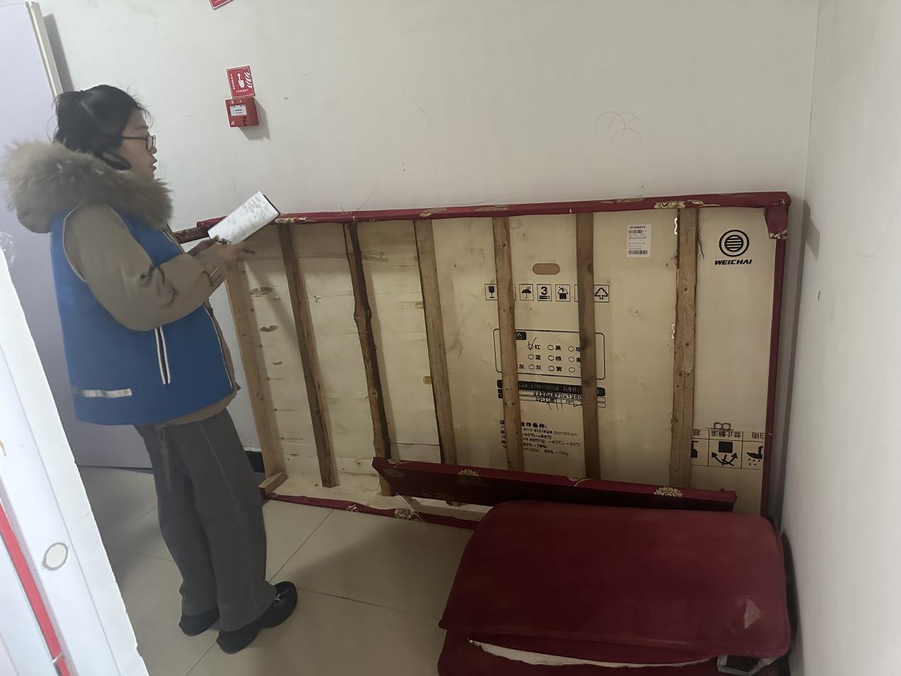 近日,济宁市任城区济阳街道财工街社区网格员在日常巡查走访时,接到居民反映,辖区某楼栋消防通道内堆放着一张废旧床,不仅占用公共空间、影响居民日常出行,还存在极大消防安全隐患。