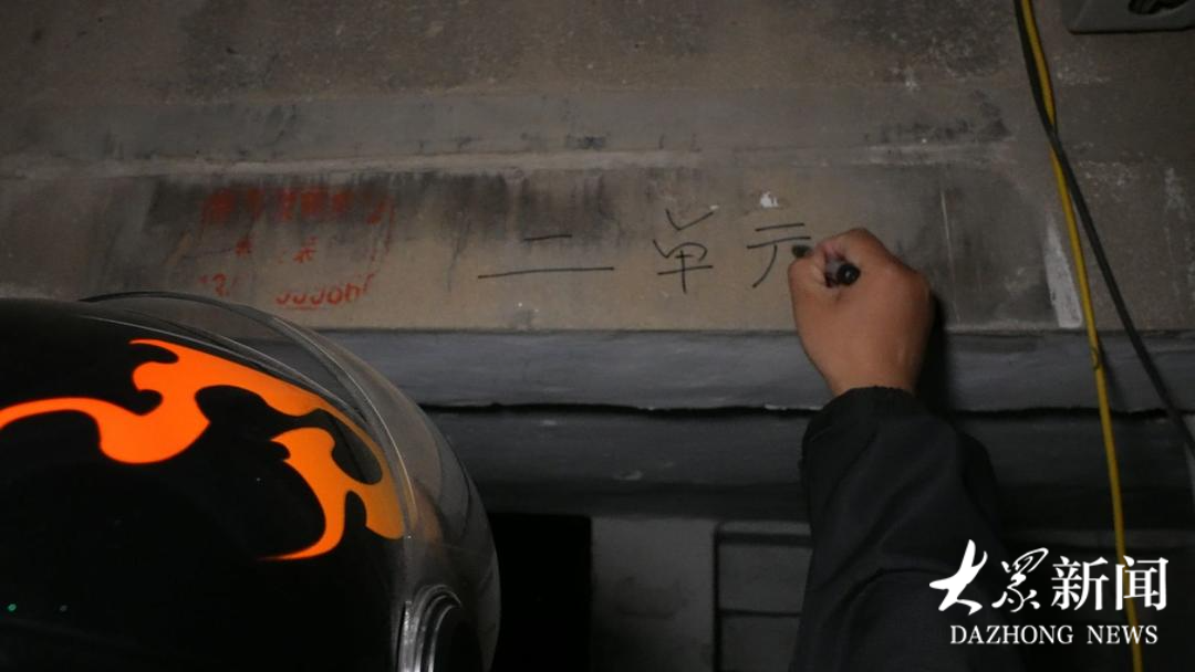 陈念景在送餐过程中在老旧小区门口写上单元号,方便自己,也方便其他骑手。