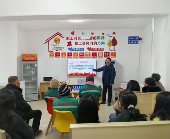 12月25日,济宁市兖州区工人文化宫工会驿站暖意融融,与往日户外劳动者休闲场景不同,这个50平方米的户外驿站变身宣讲微课堂:兖州区总工会党组成员、副主席张超化身“驿站宣讲员”,与园林工人、出租车司机、快递小哥等户外劳动者围坐一堂,用家常话解读党的二十届四中全会精神,让政策暖流直达群众心坎。