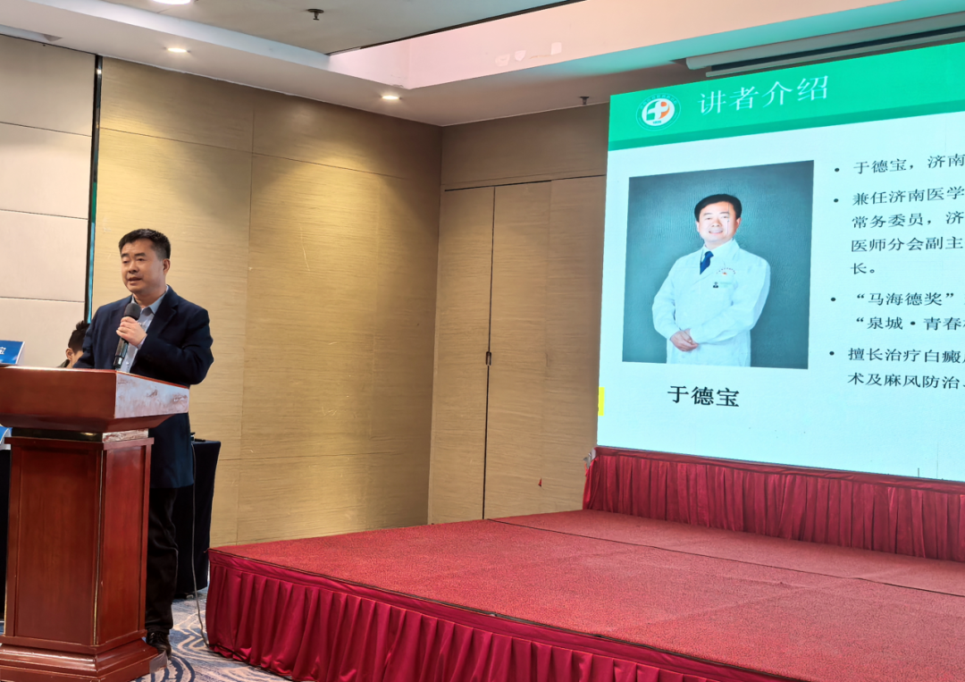 年会期间,专委会筹备会议同步召开。济南市皮肤病防治院院长、专委会副主任委员冯程受邀出席开幕式,并做会议学术主持。副院长、主任医师于德宝作为特邀专家进行了学术分享,他以《基层医疗机构常见皮肤病概述》为题,系统梳理了皮肤病的分类逻辑,针对病毒感染性、细菌感染性、红斑鳞屑性等五大类 25 种基层高发皮肤病,详解中西医结合治疗方案,既有理论支撑又有临床实操指导,内容翔实、实用性强,赢得了与会代表的一致好评与广泛认可。