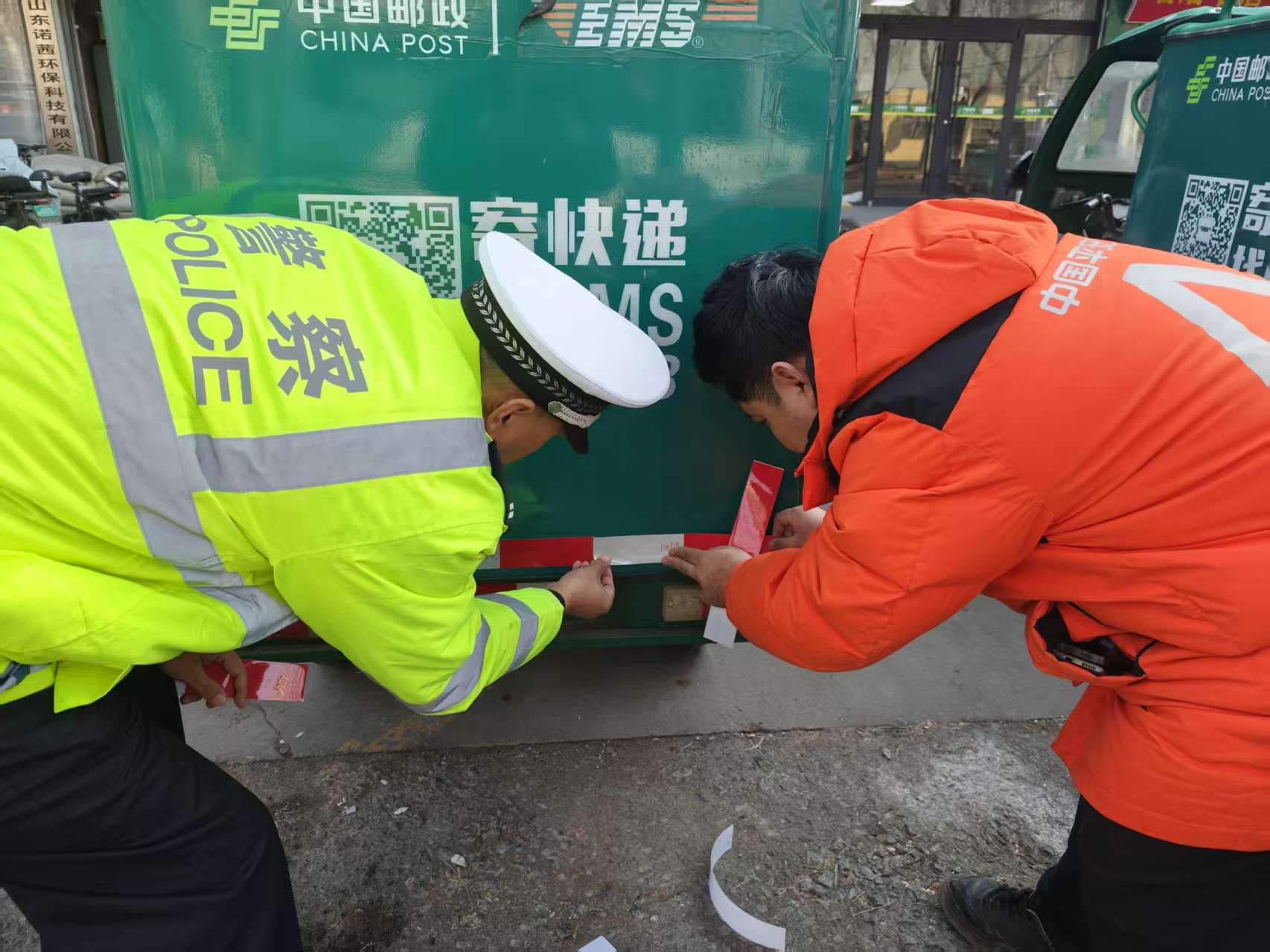 为积极应对冬季复杂道路交通环境,切实保障快递、外卖行业从业人员出行安全,有效预防和减少道路交通事故。12月24日,邹平市公安局交管大队联合中国平安财产保险股份有限公司邹平支公司共同启动"冬季守护、平安出行,关爱两员、亮尾行动"主题宣传活动。