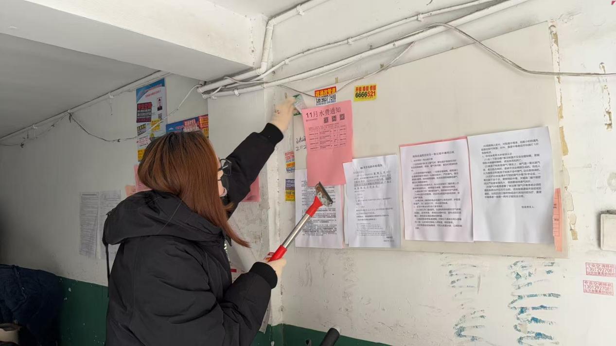在社区主干道及老旧楼道内,各类小广告层层叠叠,严重影响美观。网格员们手持铲刀、喷壶、刷子等工具,逐栋逐层进行“地毯式”清理。面对粘贴牢固的“牛皮癣”,他们先喷水浸润,再仔细铲除;对于印刷式广告,则用涂料反复覆盖。清理过程中,网格员们还积极向居民宣传,呼吁大家共同维护环境,抵制乱贴乱画行为。