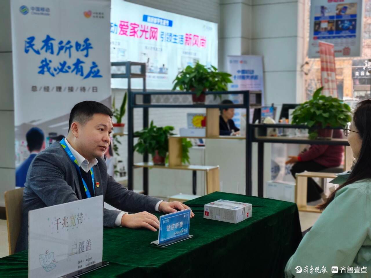 12月22日,在阳谷移动旗舰营业厅设立的“接待专区”内,阳谷分公司总经理及相关部门负责人作为“服务专员”,热情接待每一位前来咨询的客户。现场摆放着“总经理接待日”“站店听音”标识,背后“移动爱家光网 引领生活新风尚”的宣传语,展现出公司对服务民生的高度重视。