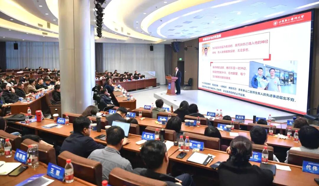 张建华从“军桥故事”与“军桥精神”的传承弘扬、本能反应与必然选择的教育溯源、医防管交叉复合型人才培养实践等三个方面系统介绍了“军桥事迹”、讲述了“军桥故事”、阐释了“军桥精神”,以及围绕弘扬军桥精神学校党委系统部署、开展事迹宣讲、传承精神内核、纳入思政素材、深化典型报道等做法措施。张建华分享了学校从历史积淀中深挖精神富矿、从医德教育中深耕价值引领、从人文关怀中升华医学温度的人文教育与医德培养做法,以及卫生管理教育探索、公共卫生危机管理博士培养等医防管复合型人才培养探索实践。他指出,山二医人自强不息、锐意进取的精神血脉,严谨务实、勤奋好学的优良学风,乐道济世、救死扶伤的使命担当,爱国奉献、胸怀天下的博大情怀,深耕内涵、守正创新的卓越品质,培养了一批批德才兼备的优秀学子,这是弥足珍贵的精神财富,也是军桥精神的源泉。