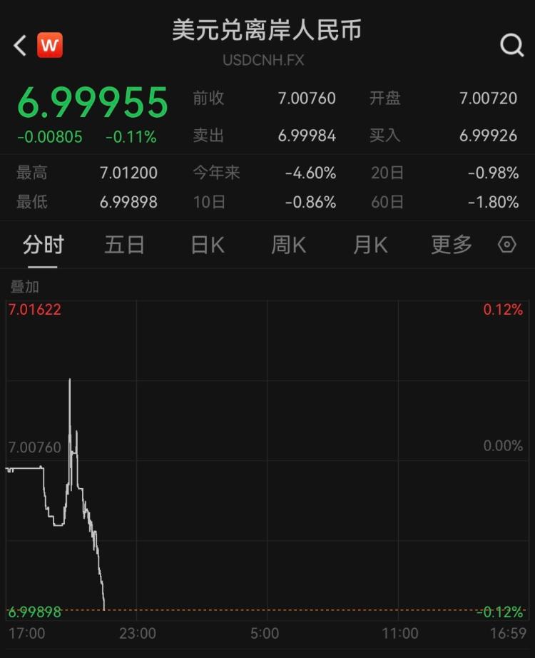 去年10月以来首次!离岸人民币对美元收复“7”关口