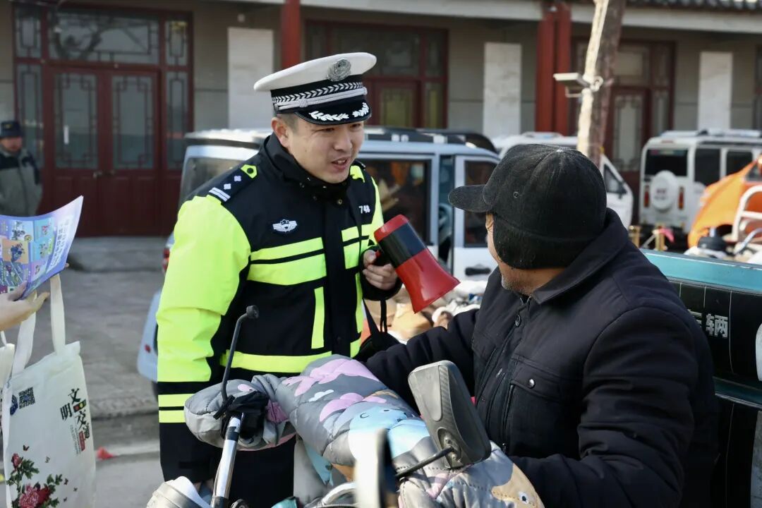 活动中,宣传人员结合事故案例,面对面向群众特别是老年人讲解冬季出行注意事项,重点普及骑乘电动车佩戴安全头盔、农用车和三轮车规范载人、夜间出行穿戴反光标识等安全知识,引导群众自觉抵制交通违法行为。随后,宣传队伍走进农村集市,通过发放宣传资料、现场讲解等方式,将交通安全知识送到群众身边,切实增强农村地区交通安全防范能力。
