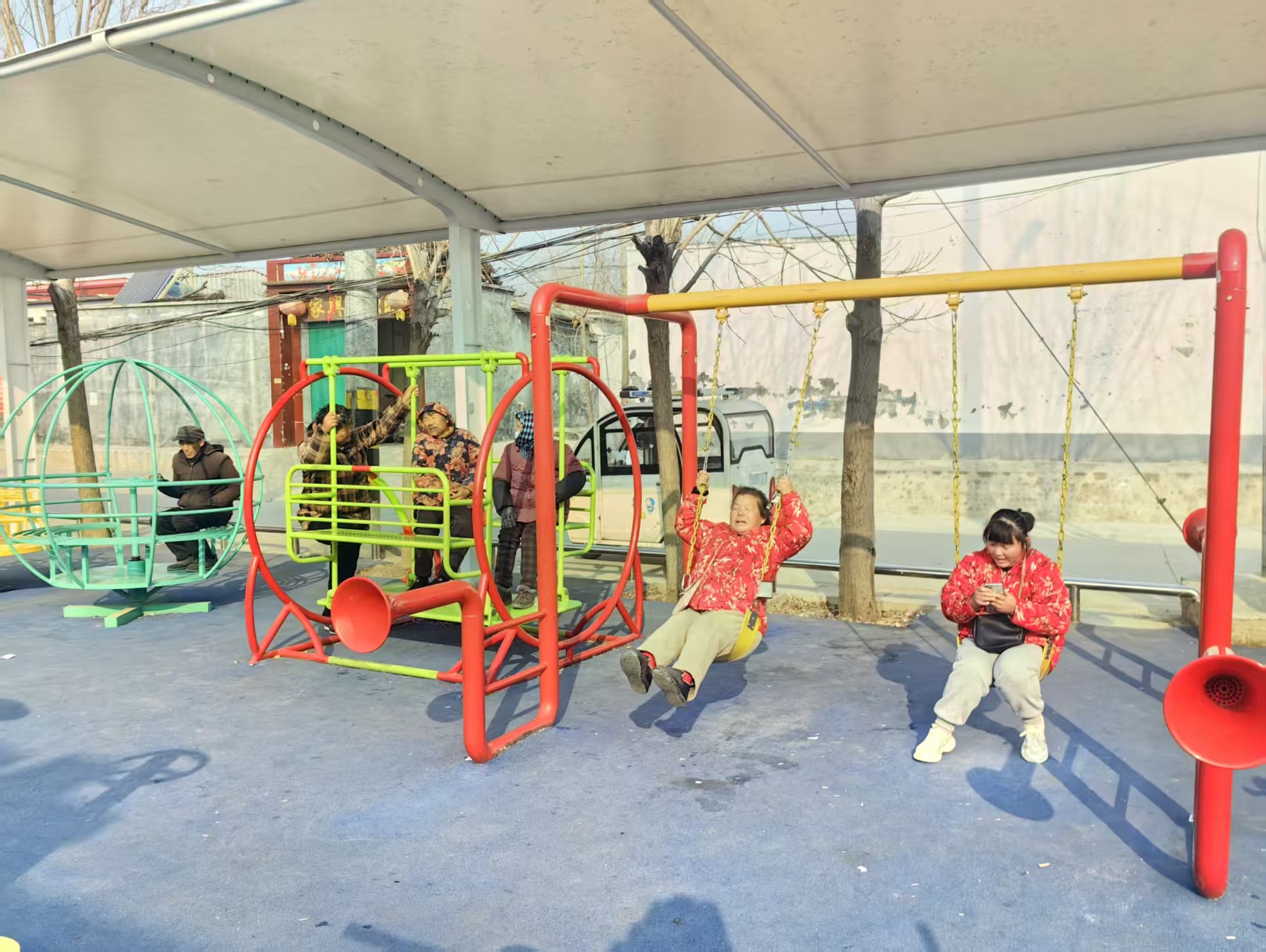 沿路步行,不久便抵达村中的娱乐健身广场。崭新的滑梯、秋千等器材错落有致,为村庄增添了许多活力与欢笑。“我喜欢新建的广场,这儿有滑梯和好多好玩儿的。放学写完作业、吃过晚饭,奶奶就带我来玩。”真真说,奶奶跳广场舞,我和小伙伴一起荡秋千,特别开心。