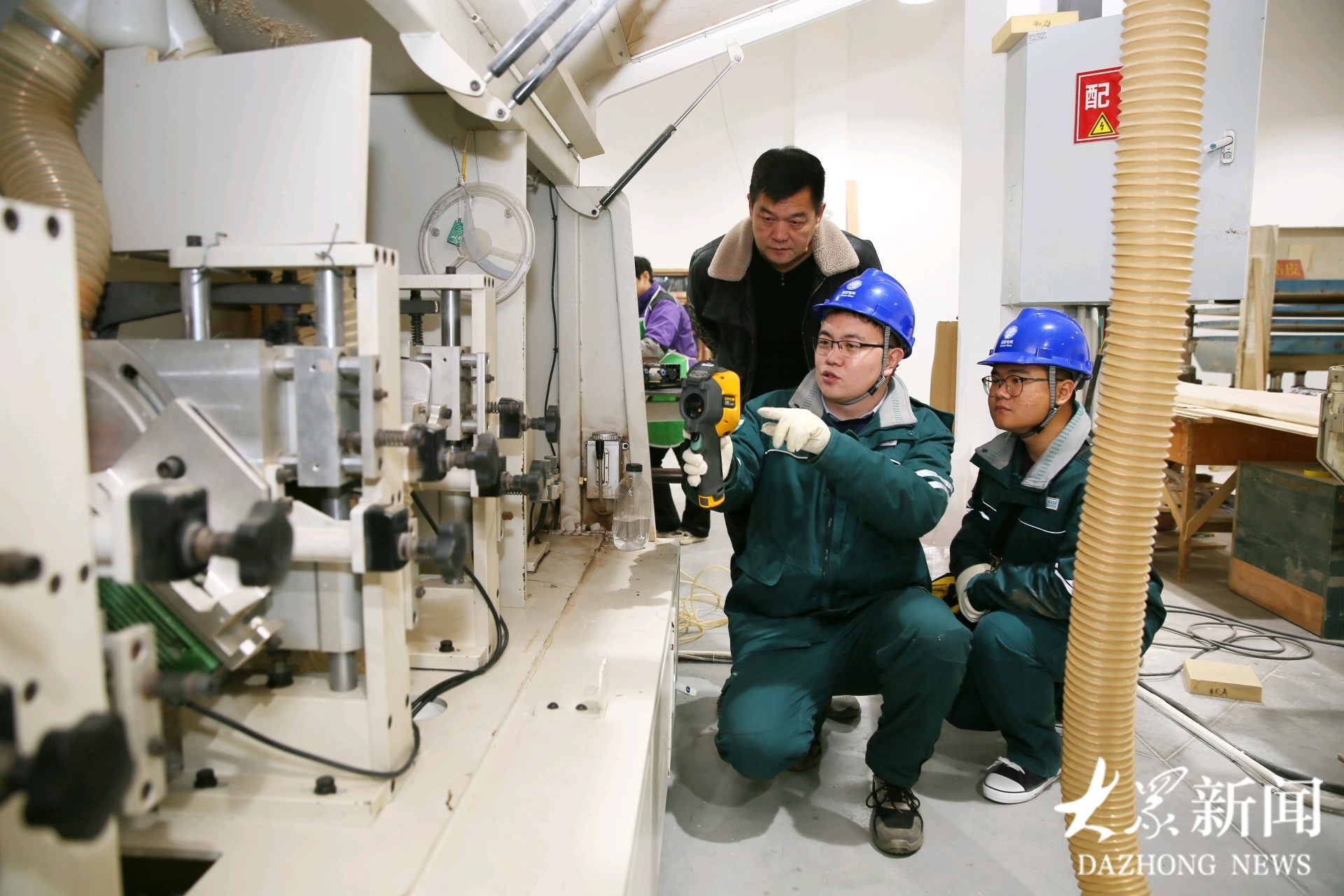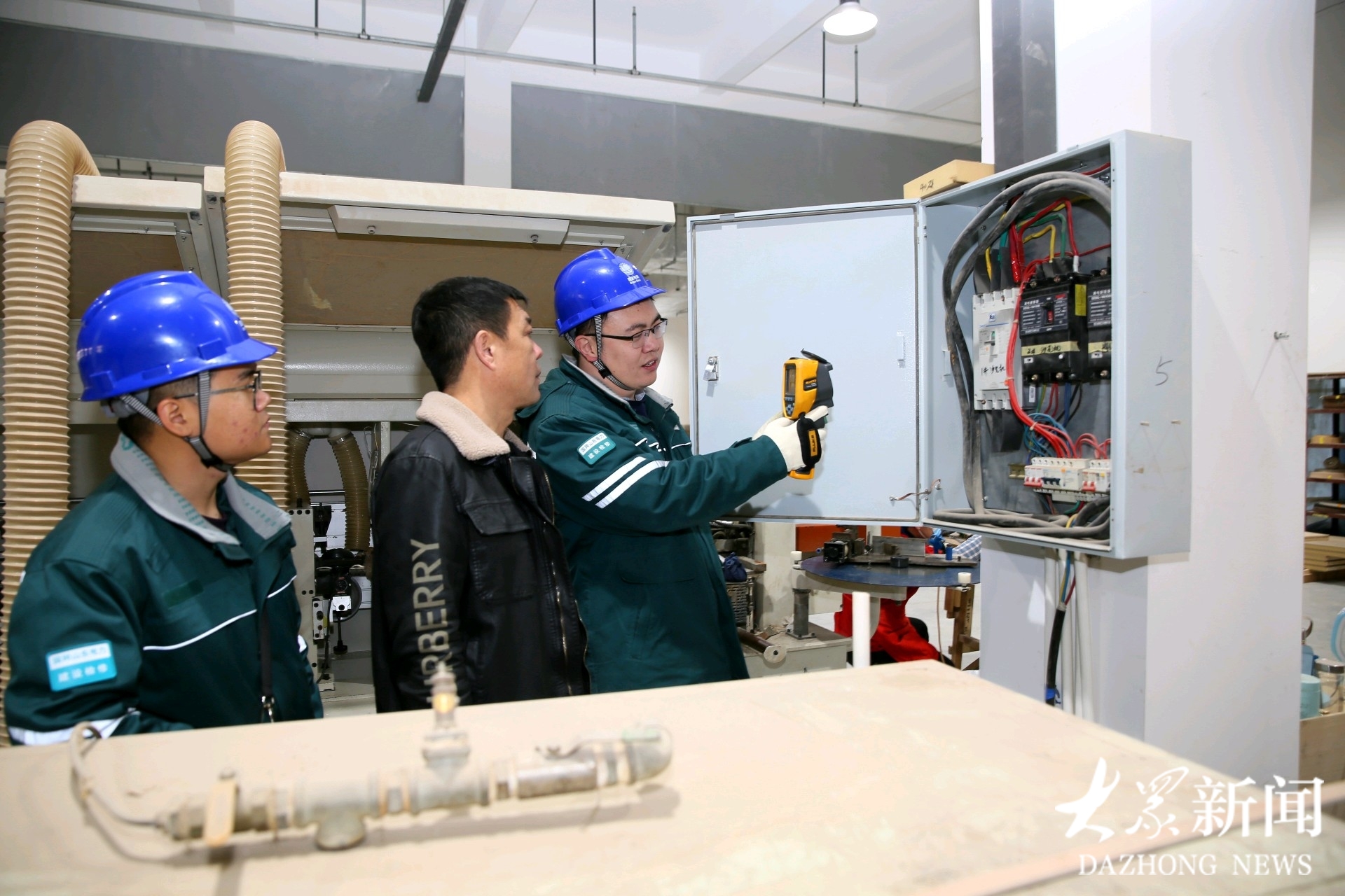在全屋定制生产车间的配电室旁,陈国圣拿起红外测温仪对配电柜、电缆接头等关键部位进行测温检测。“温度正常,不过这个电缆接头的螺丝有点松动,得及时拧紧,不然长时间运行容易发热,引发故障。这些关键部位,发现问题及时处理,千万别大意。”陈国圣和同事穿梭在机器设备之间,一边仔细检查每一处配电箱和线路接口,一边向负责人叮嘱道。