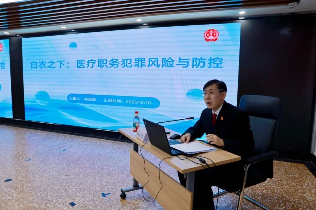 讲座中,尚宪锋紧密结合近年来法院审理的医疗卫生领域典型职务犯罪案例,以案释法、深入浅出。内容围绕该类犯罪的表现形式、最新趋势、刑事立案标准及法律后果展开,精准剖析了医疗系统关键岗位与重点环节的廉政风险点。讲座内容不仅清晰揭示了职务犯罪对个人、家庭、单位及医疗卫生事业造成的严重危害,更从司法实践角度,提出了具有针对性的风险防控与合规管理建议,旨在帮助医务人员明晰法律红线,增强“免疫力”。