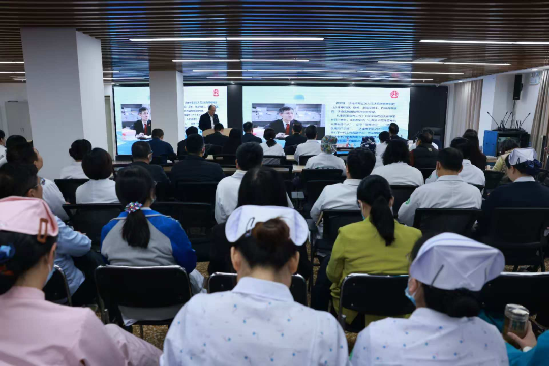 近日,为助力医疗卫生行业法治建设,从源头上防范医疗领域职务犯罪风险,济南市章丘区人民法院应山东省中西医结合医院邀请,刑事审判庭庭长尚宪锋为医院干部职工举办了一场题为“医疗职务犯罪风险与防控”的专题法治讲座。医院领导班子、各职能部门负责人、临床医技科室主任及护士长等150余人参加了此次培训。