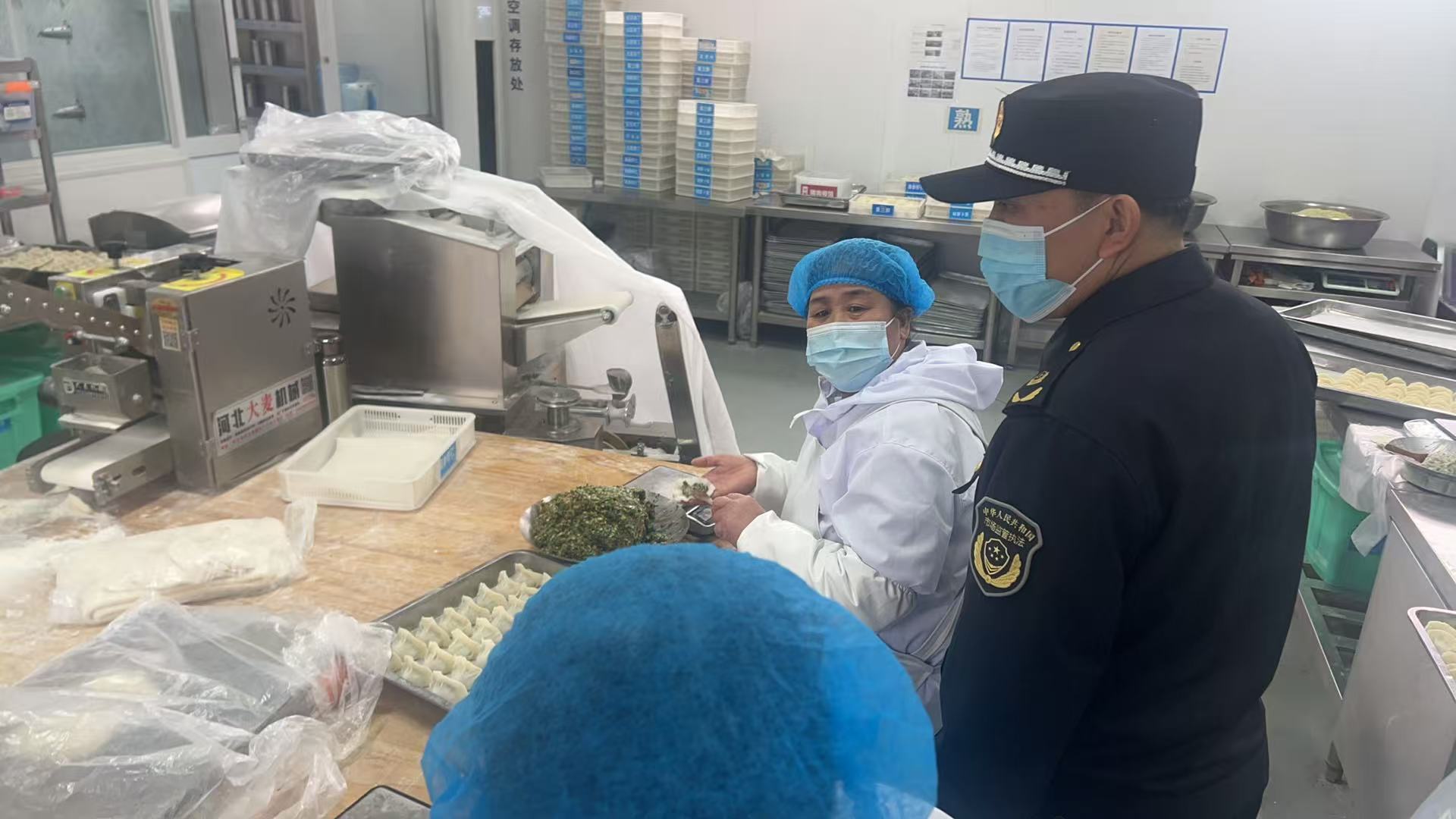 张店区市场监管局体育场市场监管所所长杨光日常检查八大局餐饮店后厨。