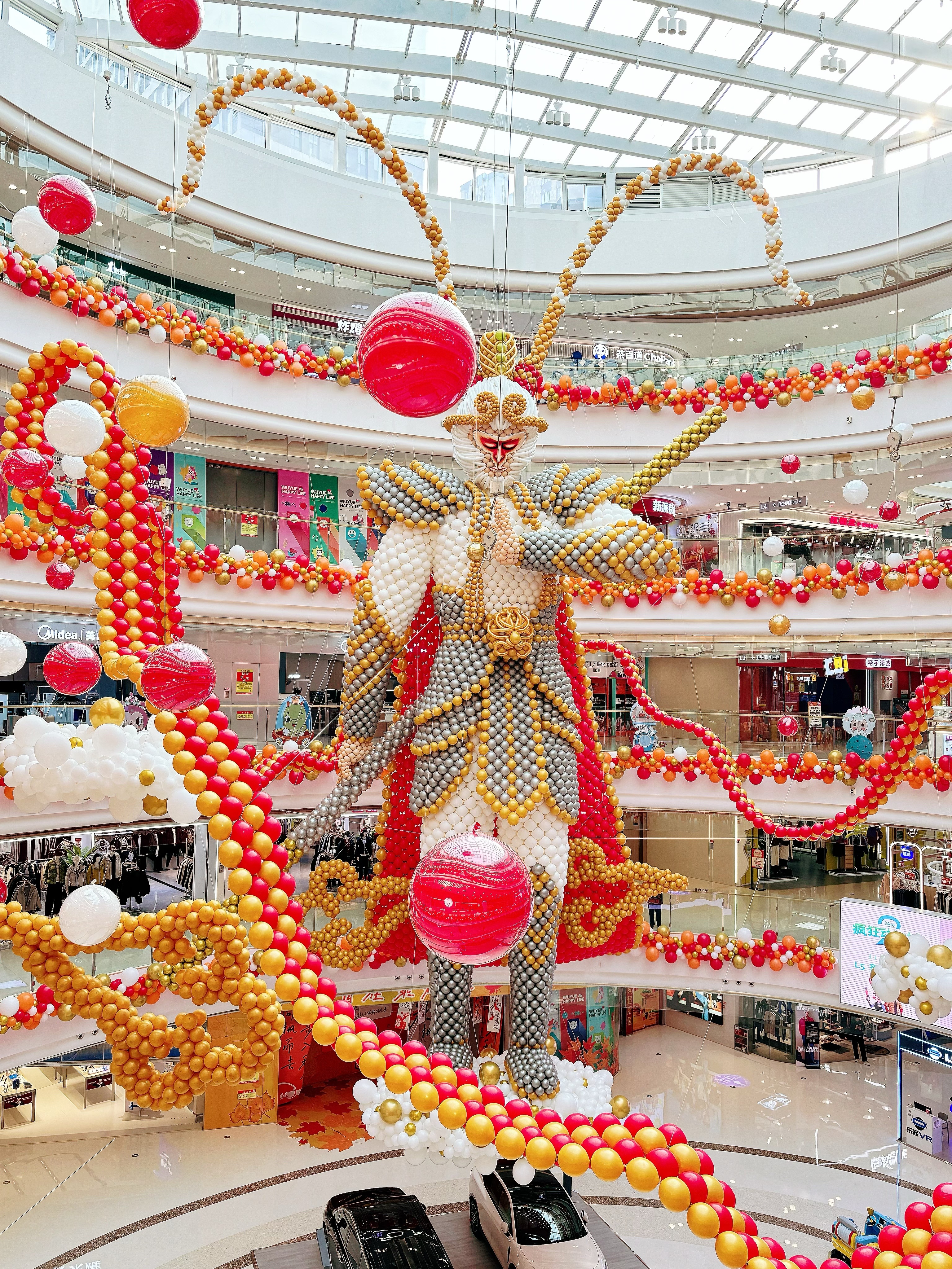 “齐天大圣IP其实已经很普遍了,我们一直在思考更有特色的呈现方式,以给吾悦带来更多的人气。” 淄博吾悦广场相关负责人表示,这个由专业气球放飞技术指导携12人团队,经过72小时,用7万余气球编织成的“大圣”,将一直展出至2026年1月31日。