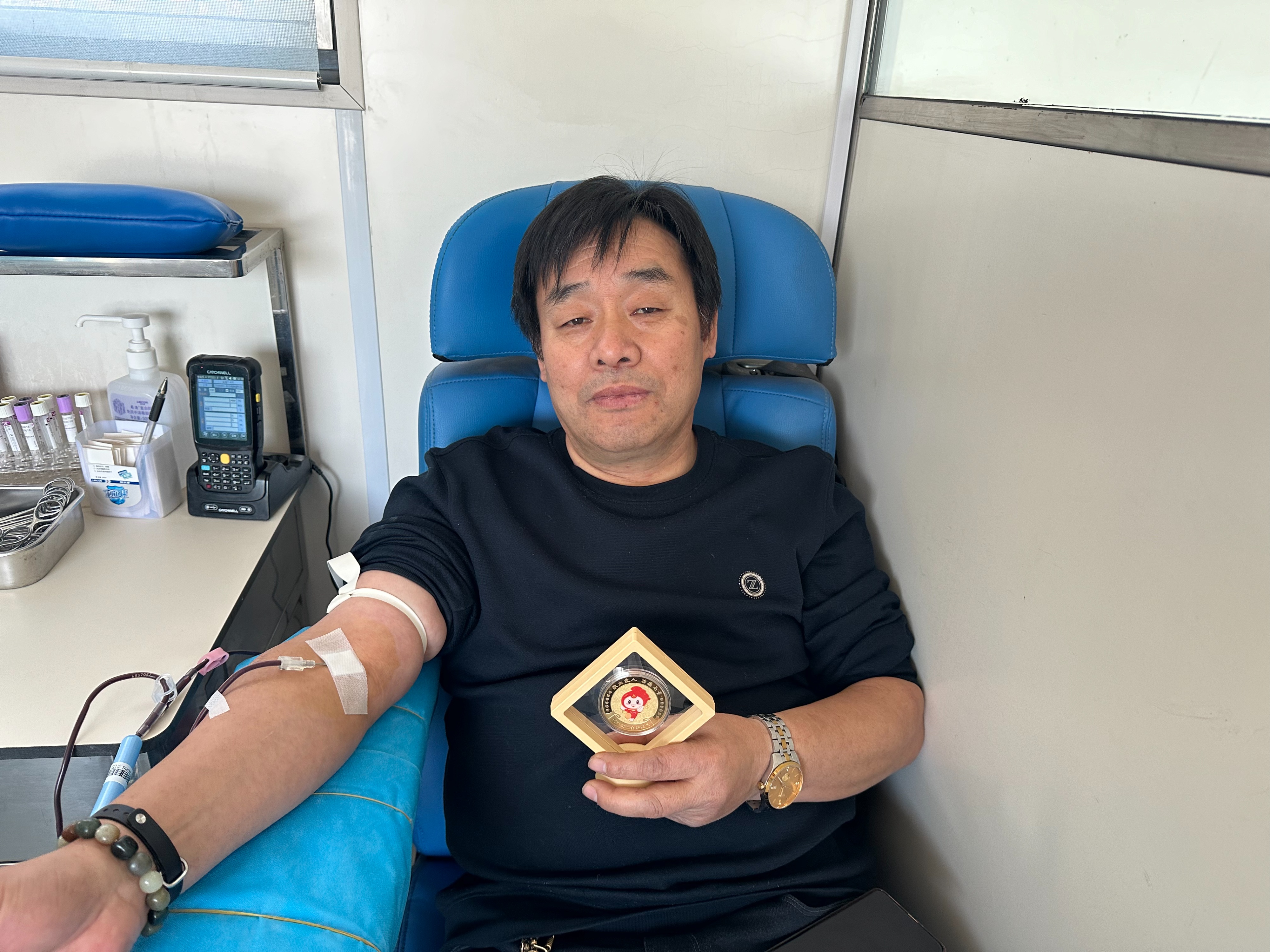 51岁的张会乐是滨州市惠民县中医院的一名医生,从事中医诊疗工作多年。在他的诊室里,每天都有数十位患者前来求诊。而在诊室之外,他还有另一个身份——无偿献血者。