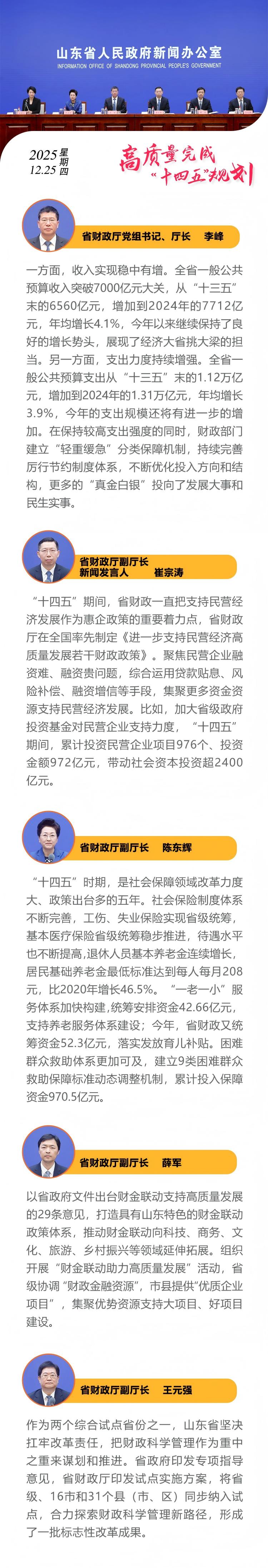 12月25日上午山东省人民政府新闻办公室举行高质量完成十四五规划系列主题新闻发布会邀请山东省财政厅主要负责同志等介绍十四五时期山东深化财政改革发展情况大众新闻记者杨烨莹李亚平策划陈巨慧