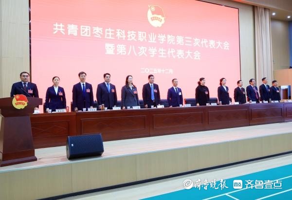 12月24日,共青团枣庄科技职业学院第三次代表大会暨第八次学生代表大会在学术交流中心二楼会议室隆重召开。200名来自各二级学院的正式代表肩负全校团学青年重托,齐聚一堂共商学校共青团和学生工作发展大计,共绘青春建功蓝图。