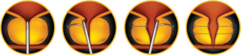 前列腺悬扩术是一种介于手术治疗与药物治疗之间的超微创疗法,通过机械的方法,用植入物固定增生的前列腺组织,使其不再阻塞尿道。就像是“拉窗帘”一样,将增生的腺体通过束钉拉开,既保留了前列腺的基本结构,又避免了传统手术并发症,而且不会引起新发、持续的勃起或射精功能障碍。此外其手术时间较短,术中创伤极小,通常术后当天就能回家。