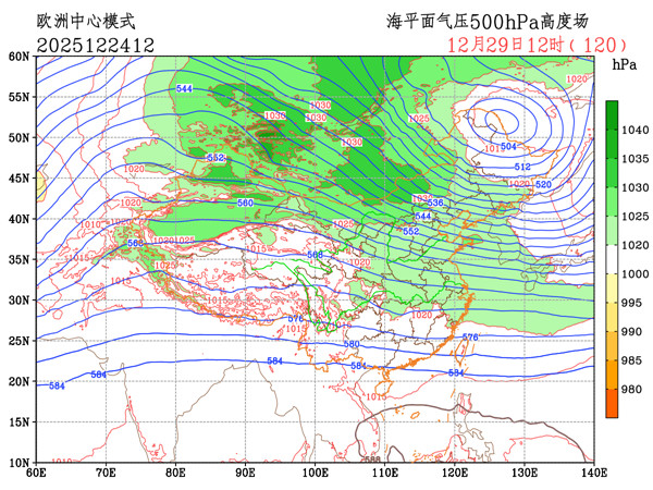 一些数值预报给出了华北一带将出现跨年降雪,甚至是长江中下游沿线、江南和贵州等地也会出现降雪。