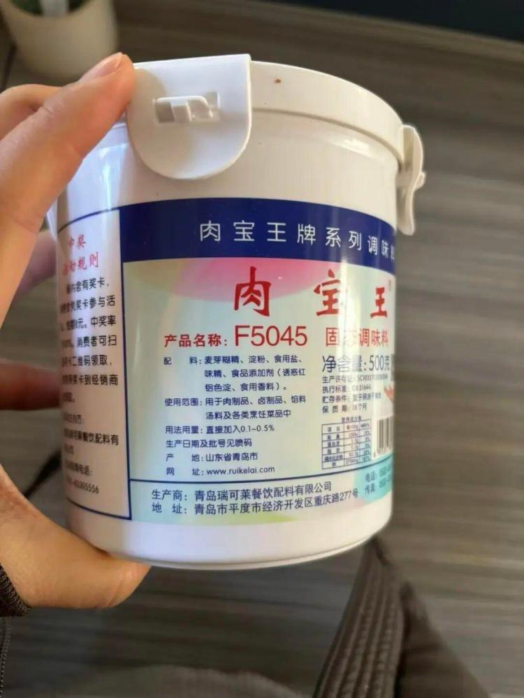 商家告诉记者,“肉宝王”属于国标允许使用的复合调味料,适用于卤制品、烧烤及肉制品加工。用于卤肉和烤鸡时,一般在腌制环节添加,每公斤肉添加1–2克,“不宜多用”。