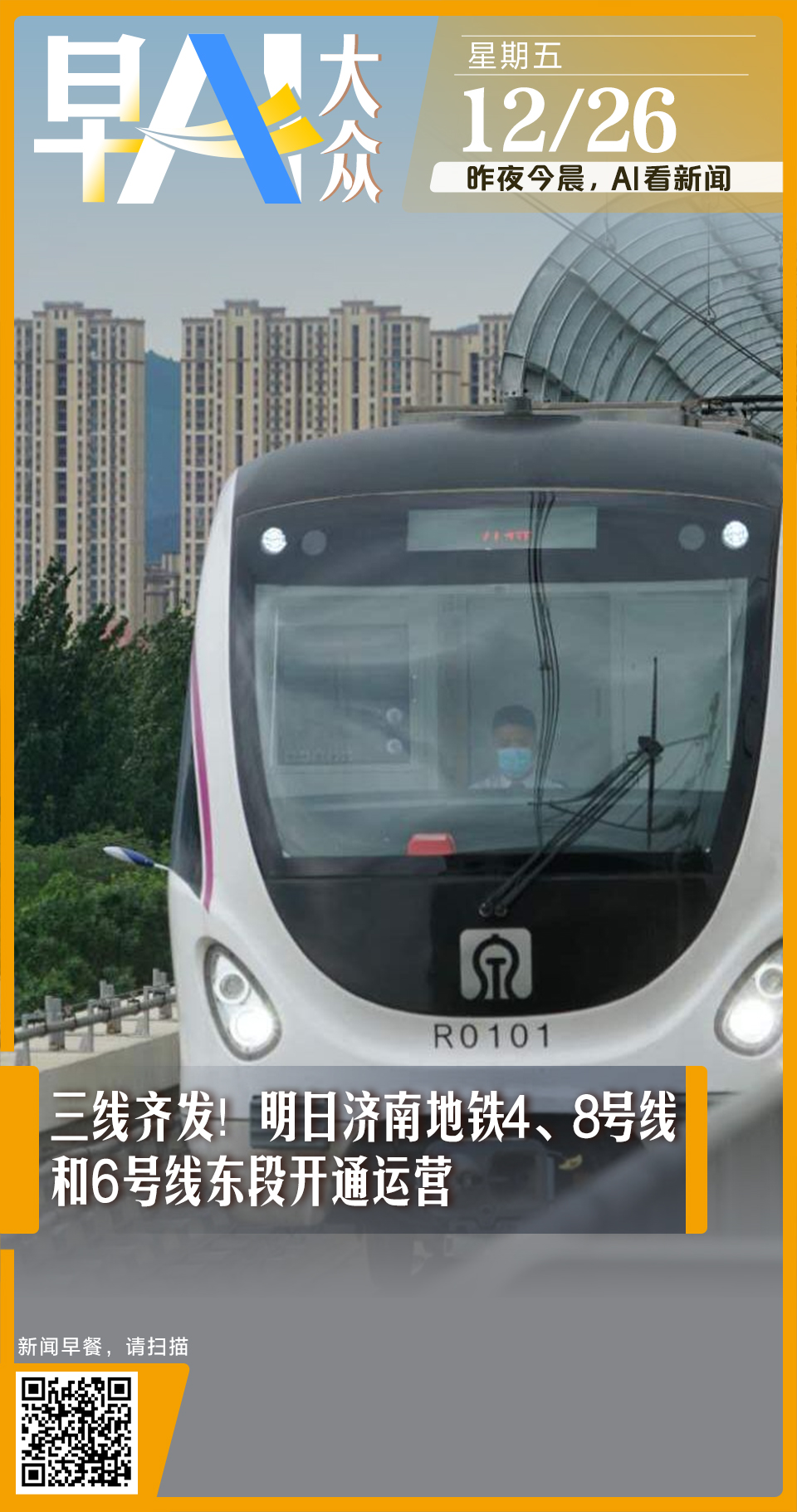 三线齐发!12月27日10时15分,济南地铁4、8号线和6号线东段开通运营