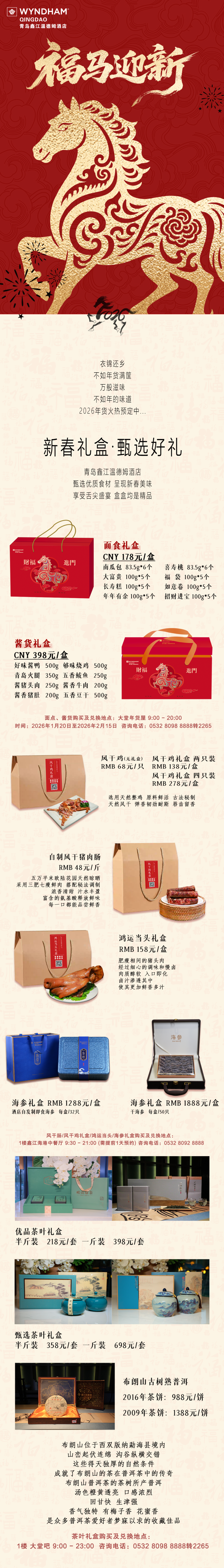 福马迎新-至臻好礼丨2026年货礼盒大众报业·齐鲁壹点 2025-12-26 09:49:13 预订RESERVATIONST : 0532 - 8098 8888 更多优惠,进入微商城READ MORE TO ACCESS WECHAT SHOPFOR MORE DISCOUNT责任编辑:管慧晓