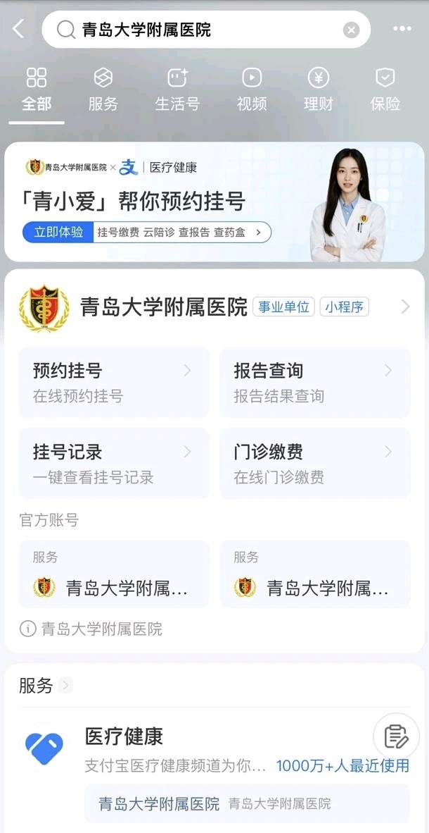 近日青大附院联合蚂蚁健康公司,依托人工智能与大模型技术打造的,具备智能导诊、全程陪伴就医、AI报告解读等功能的终端智能体——“青小爱”智慧就医AI助理,在支付宝平台和蚂蚁阿福APP正式上线。