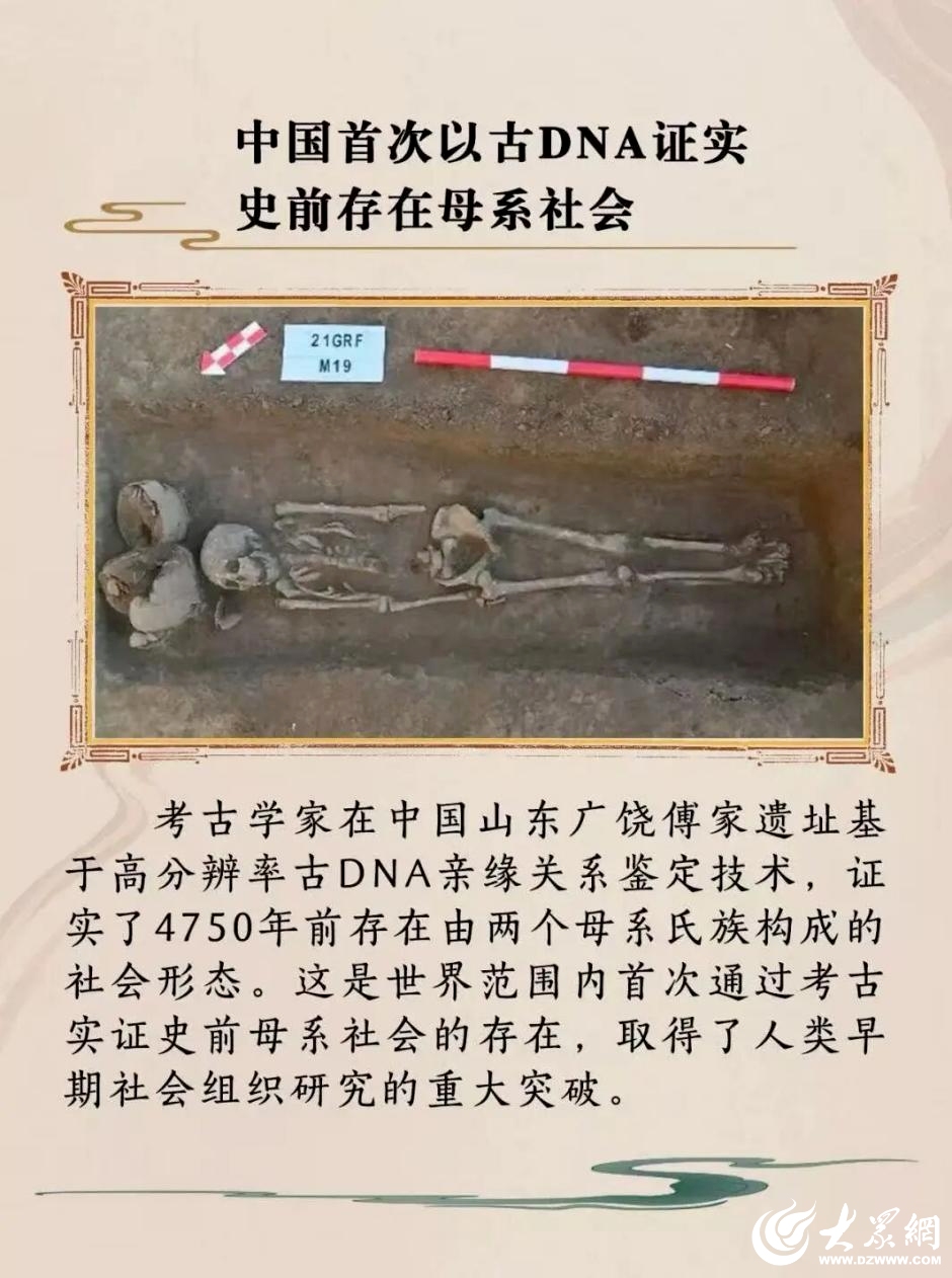 12月24日,中央广播电视总台发布2025年度国际十大考古新闻。基于对东营市广饶傅家遗址的研究,“中国首次以古DNA证实史前存在母系社会”入选2025年度国际十大考古新闻。