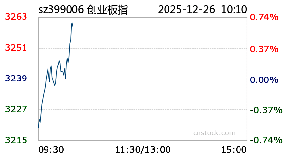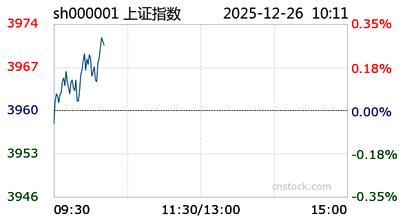 AI小壹12月26日讯 沪市小幅上涨,最高触及3972.52点,最低下探3956.57点,振幅0.27%。截至10:00,上证指数高开3970.29点,涨幅0.27%,成交额3129.47亿元,成交量1.86亿;深证成指报13620.87点,最高13628.24点,最低13518.46点,涨幅0.66%,成交额4780.05亿元,成交量2.69亿创业板报3258.4点,最高3261.4点,最低3219.13点,涨幅0.59%,成交额2155.76亿元,成交量7758.01万