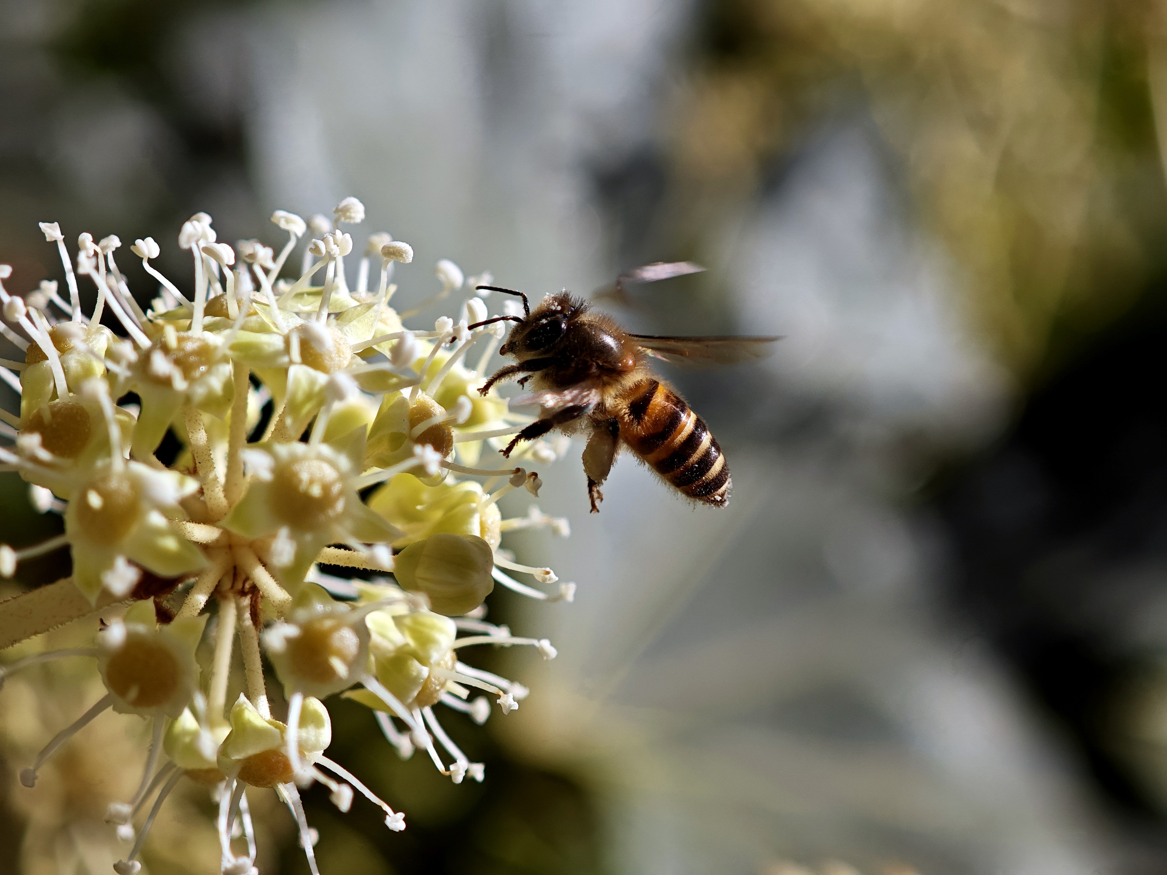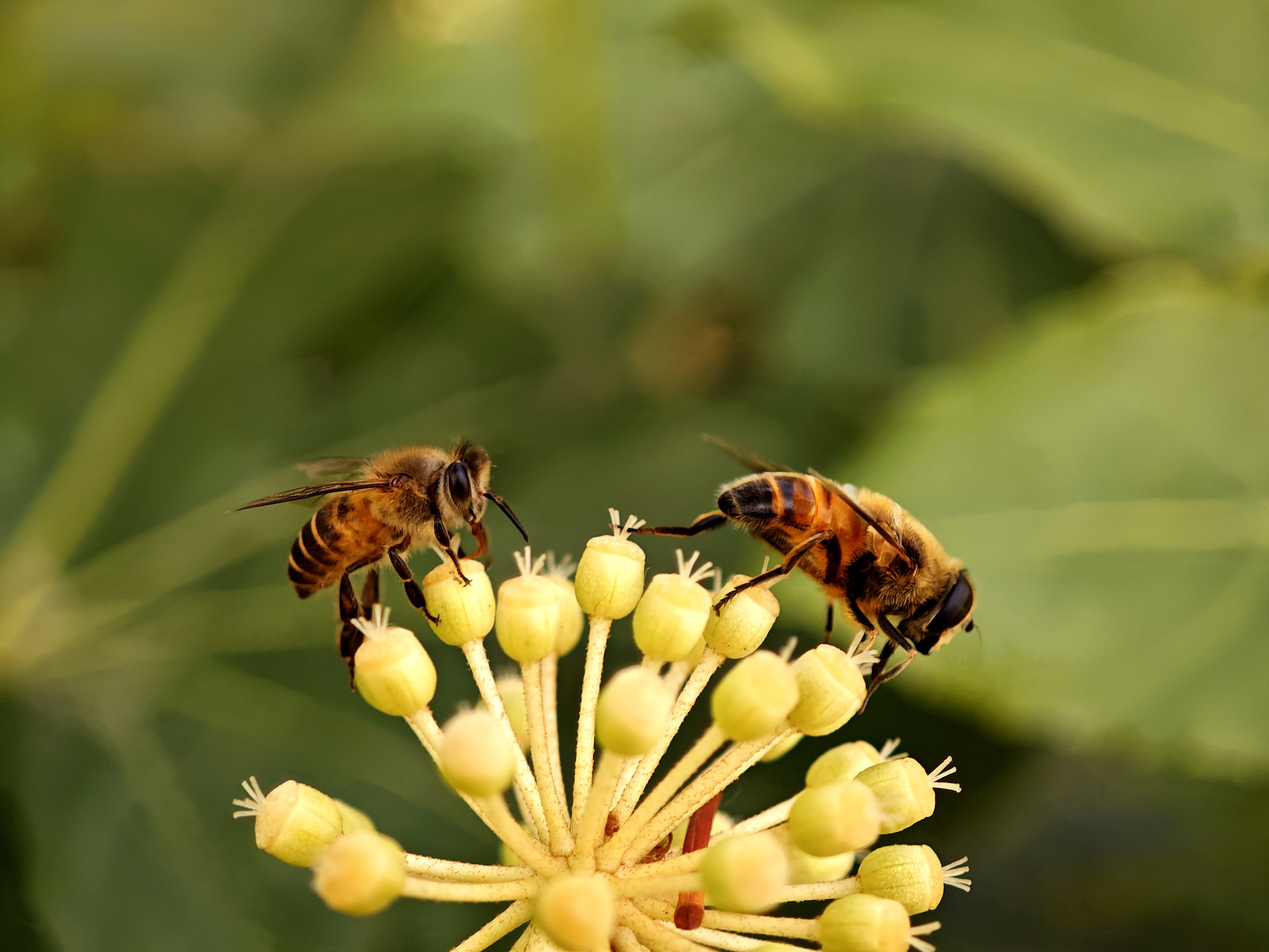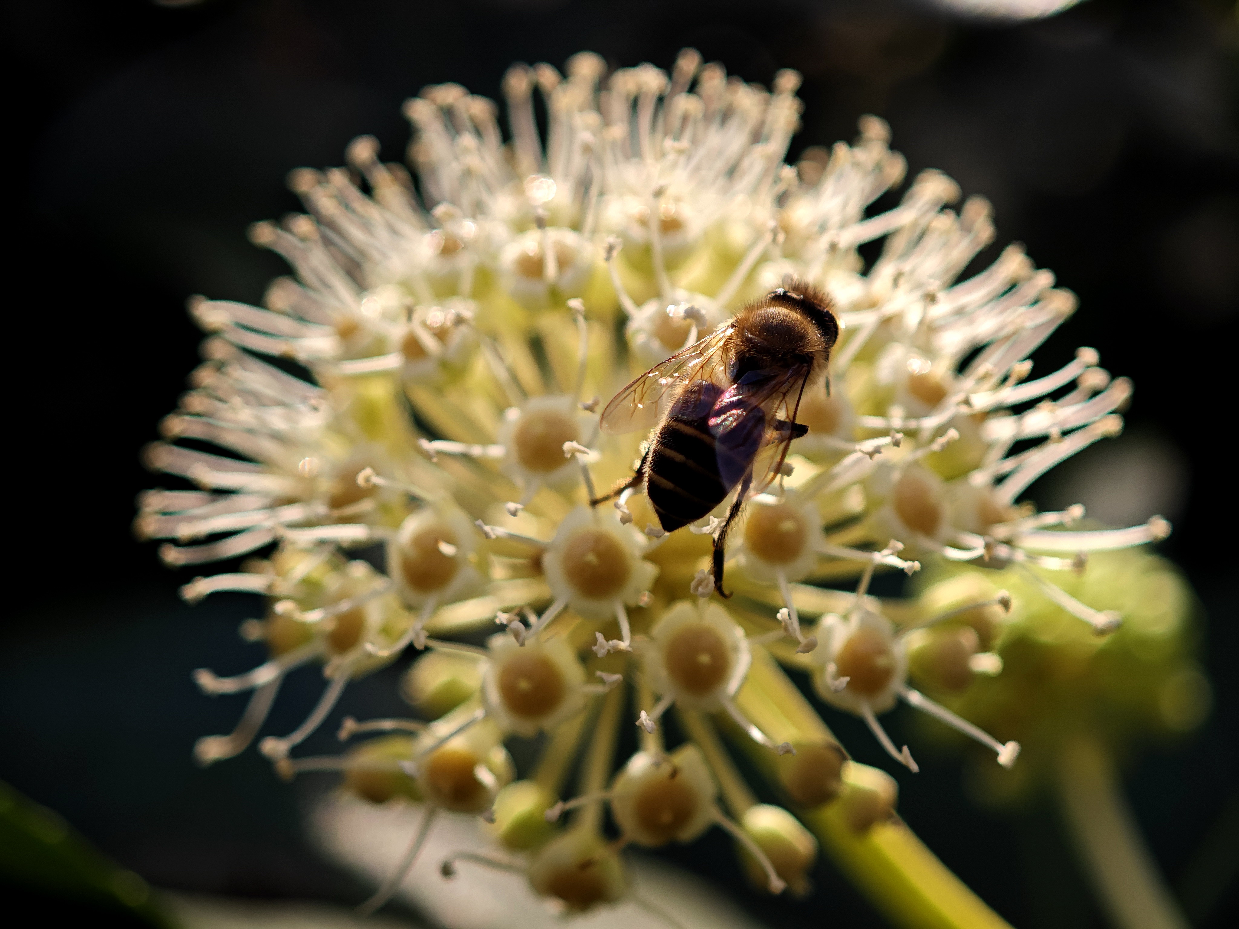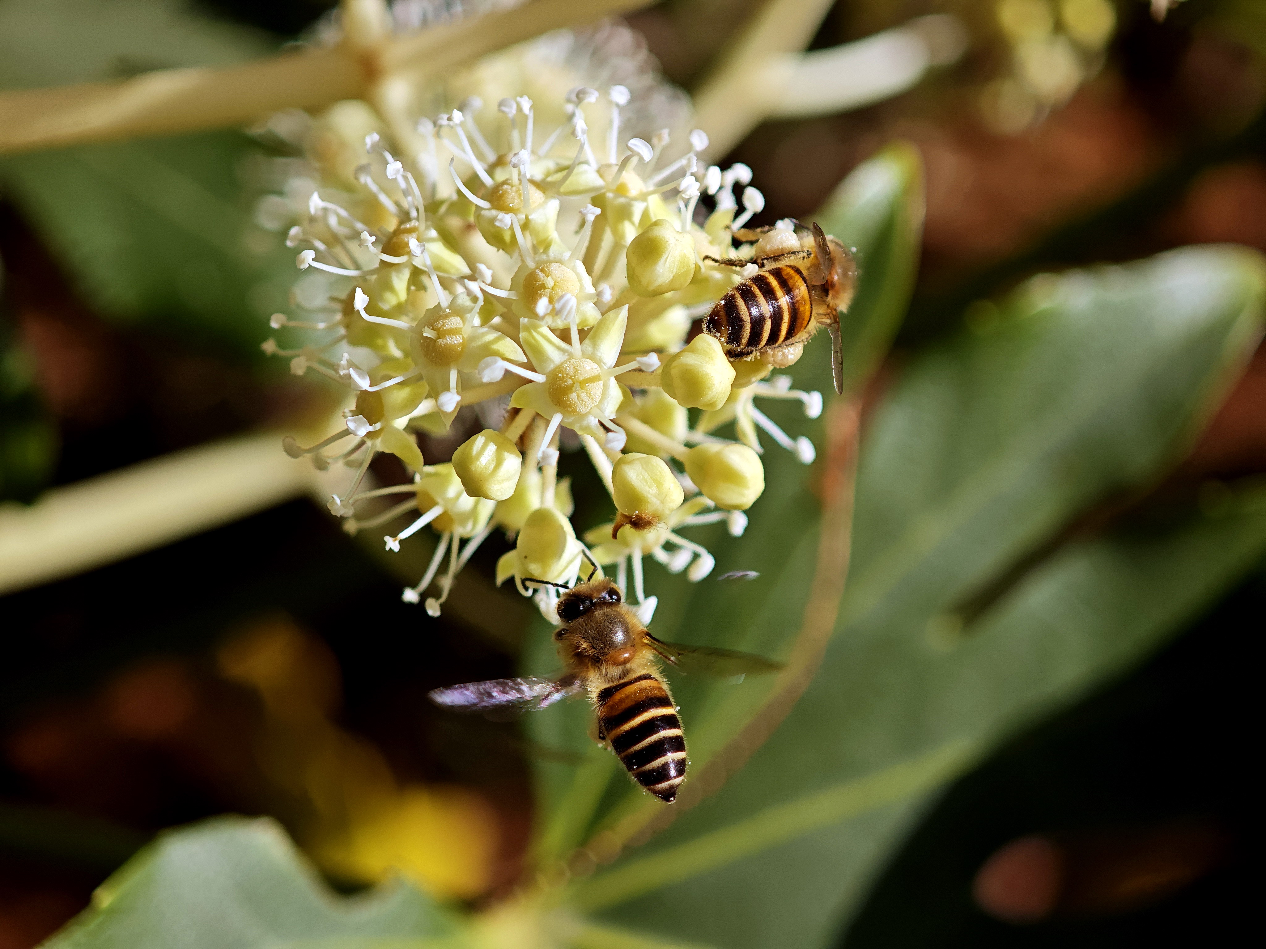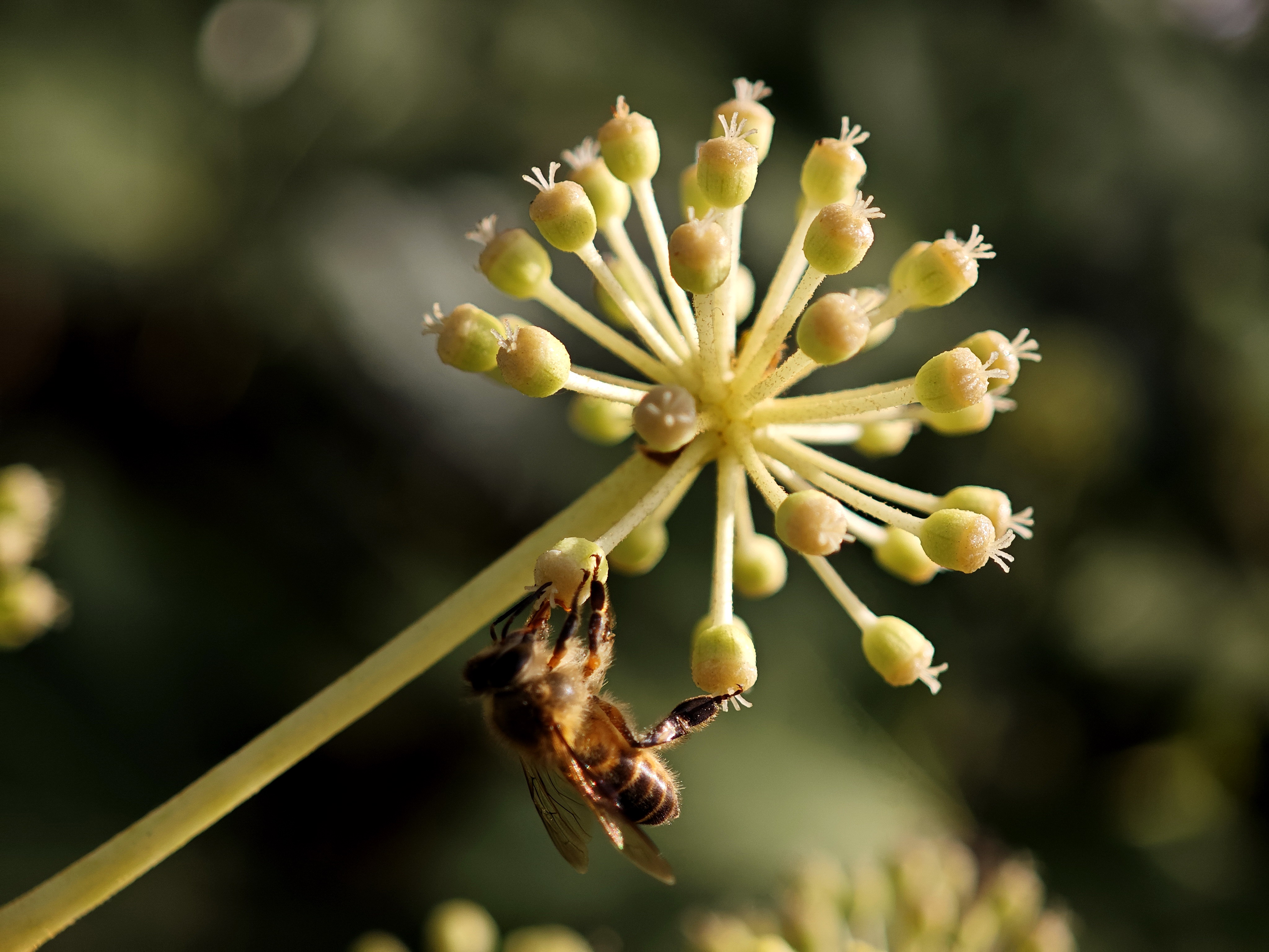 寒冬时节,临沂五洲湖公园里的八角金盘叶子舒展如绿伞,一簇簇绒球状的小白花悄然绽放。闻香而来的蜜蜂,在花丛中穿梭飞舞,给这个冬季增添了几份灵动与暖意。