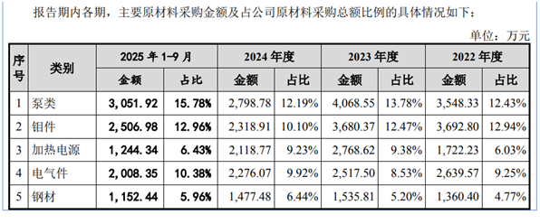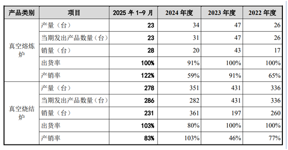 尽管市场表现亮眼,但广泰真空招股书披露的多项数据却存在明显背离,引发市场疑虑。核心产品产量与原材料采购的失衡尤为突出:2023年公司真空熔炼炉产量同比激增80.8%,烧结炉产量增长28.3%,核心产品总产量同比增长23.2%,但主要原材料采购总额仅增长8.6%。其中关键耗材钼件采购额同比下降,钢材采购额仅增长12.6%,与“高耗材产品产量翻倍需核心原材料同步增长”的行业逻辑相悖,其采销数据的合理性遭到质疑。