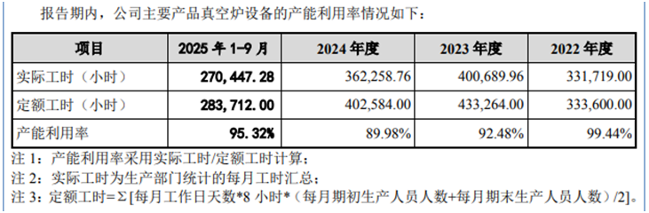 而2024年则出现工时与薪酬的反向变动:据招股书披露,2024年广泰真空主要产品实际工时为362258.76小时,较2023年的400689.96小时下降10%,但制造费用中的人工薪酬却从2023年的295.72万元增至490.80万元,大幅增长18%,生产效率与人工成本的背离现象明显,其合理性尚未得到公司说明。