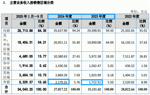 在出口业务方面,招股书显示2023年至2024年公司外销金额合计仅3891.83万元,但中央广电总台国际在线2024年11月报道称,公司自2023年以来出口创汇订单达3000万美元,按同期中美汇率折算约2.12亿元,两者差距超1.7亿元,且出口创汇金额通常小于出口销售金额,这一巨大差异未能在招股书中给出合理解释。