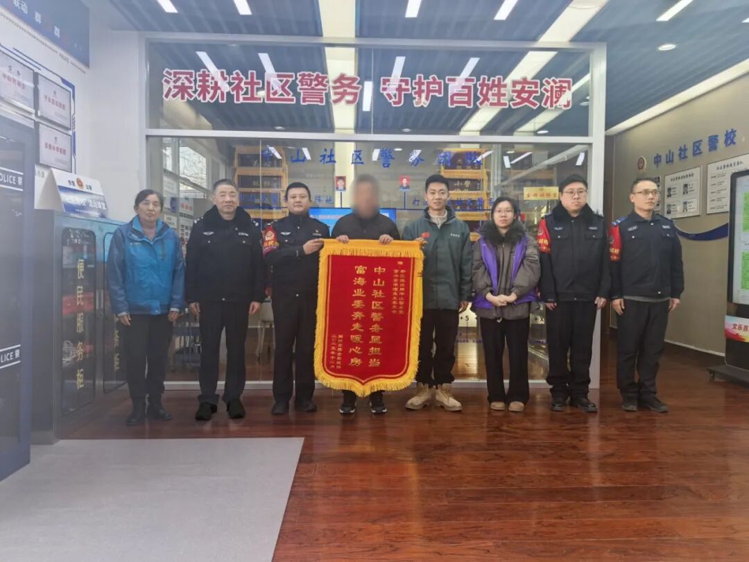 “中山社区警务显担当 富海业委奔走暖心房”的锦旗