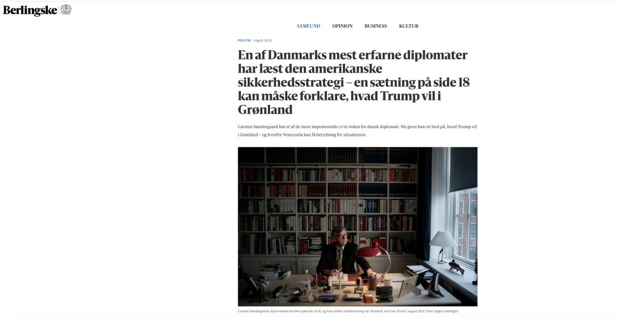 丹麦《柏林斯克时报》:美国国家安全战略第18页中的一句话,或许能解释特朗普在格陵兰岛的意图。