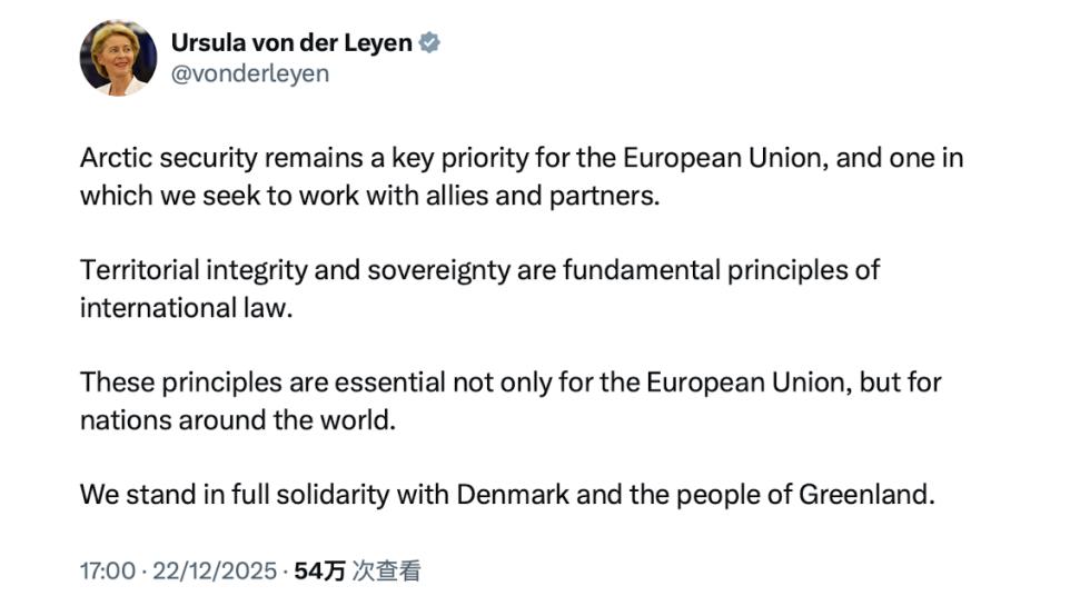 格陵兰岛问题已不再只是丹麦与美国之间的双边分歧,而是触及欧盟对国际法秩序、主权原则以及北极安全战略的核心关切。尽管欧盟成员国在对美关系和安全依赖程度上存在差异,但在反对改变格陵兰岛地位、维护丹麦主权的问题上,却形成了罕见共识。