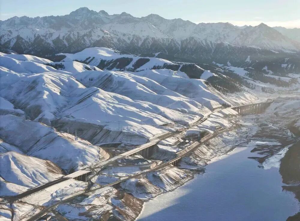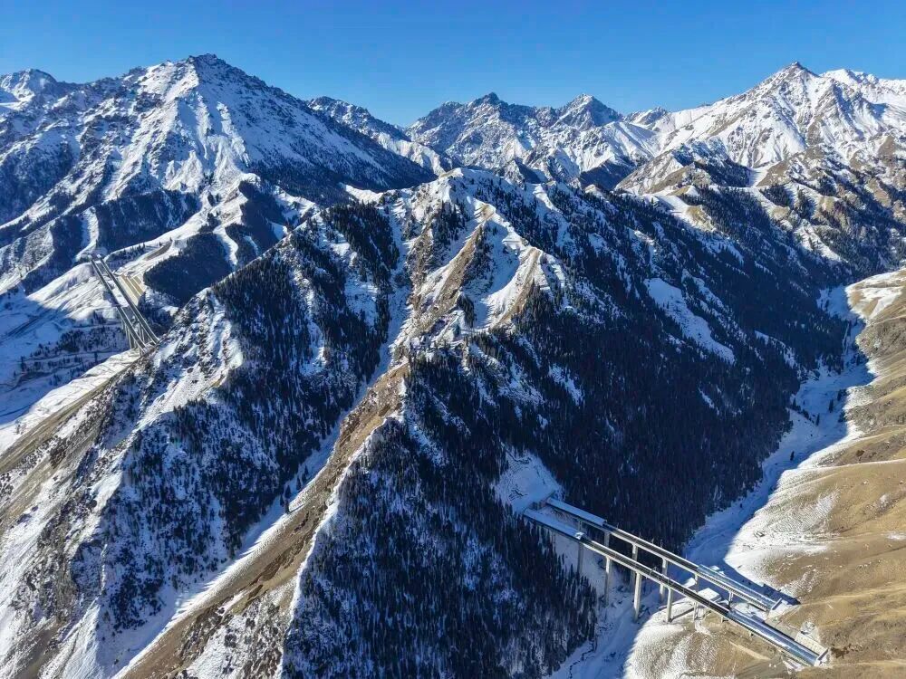 桥隧相连的乌尉高速公路穿越天山山脉(2025年12月23日摄)。新华社记者 胡虎虎 摄