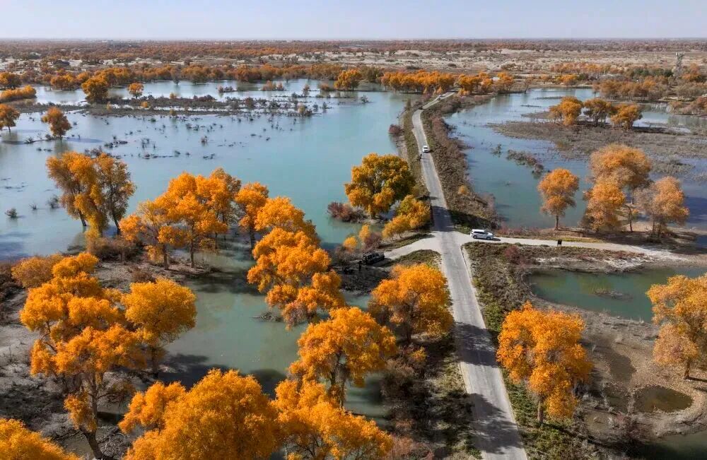 这是在新疆尉犁县附近拍摄的大漠胡杨秋景(2024年10月26日摄)。新华社记者 胡虎虎 摄