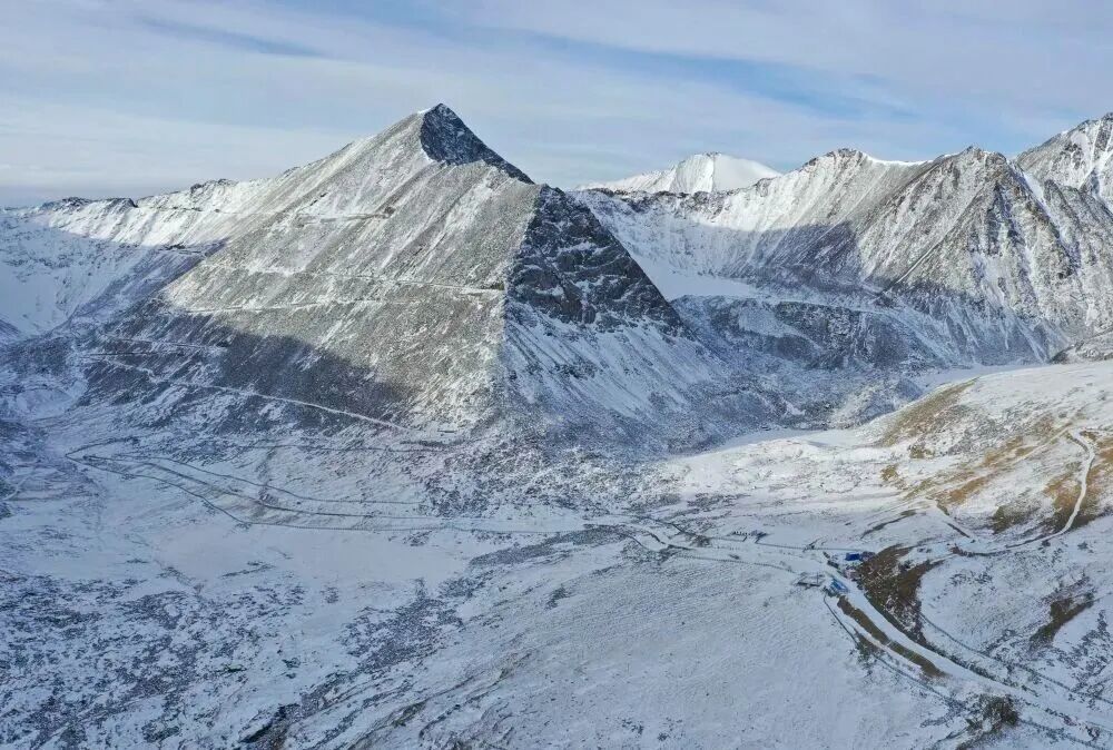 国道G216线海拔超4000米的胜利达坂附近(2021年2月5日摄)。过去很长一段时期内,从乌鲁木齐去往南疆,需从这里翻越天山。新华社记者 胡虎虎 摄
