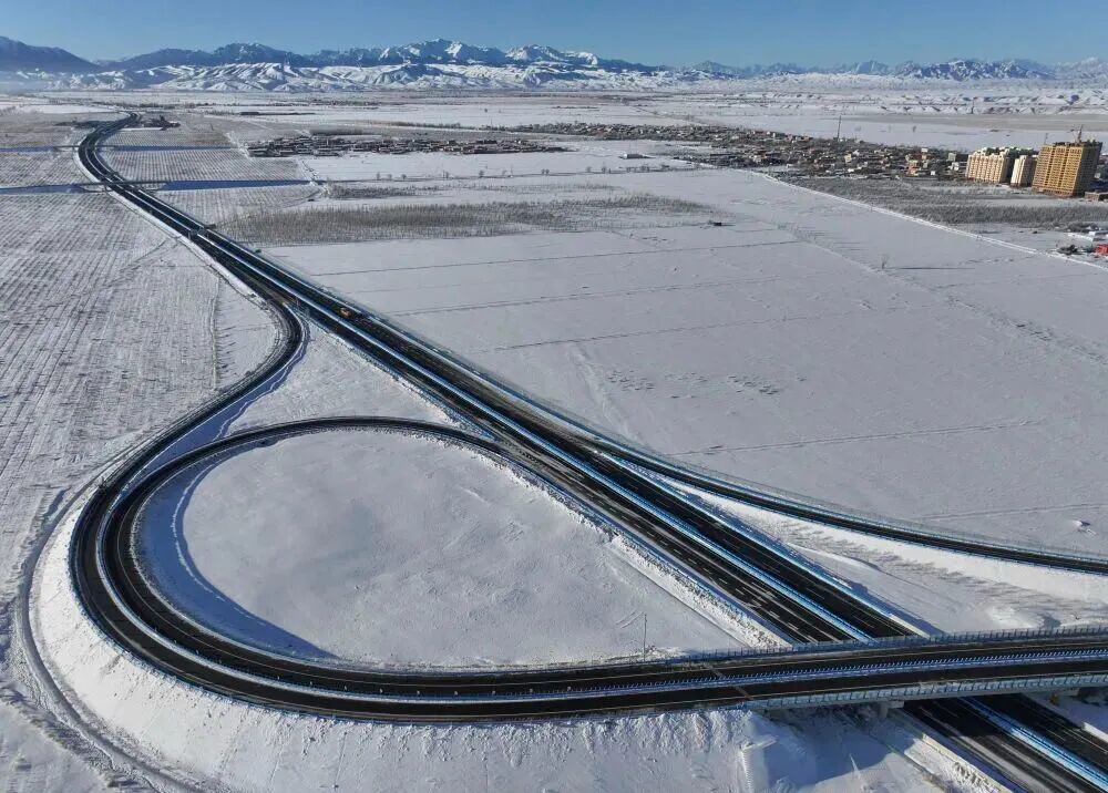 这是在乌鲁木齐县拍摄的乌尉高速公路永丰立交(2025年12月23日摄)。新华社记者 王菲 摄