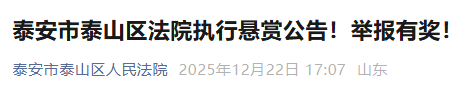奖励实际执行到位财产金额的20%!泰安1人被悬赏!