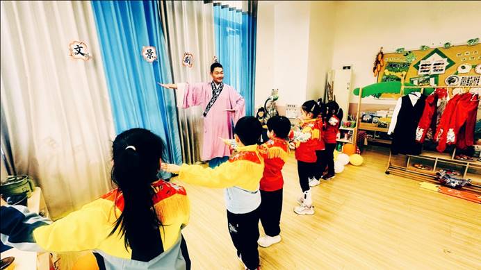 活动打破传统表演观看模式,突出“幼儿参与、现场跟学”。曲山艺岭戏曲艺术团演员们化身启蒙导师,为孩子们带来了经典京剧、吕剧选段表演,开启了一场趣味盎然的戏曲初体验。华美的戏服、婉转的唱腔、细腻的身段,迅速吸引了所有孩子的目光。