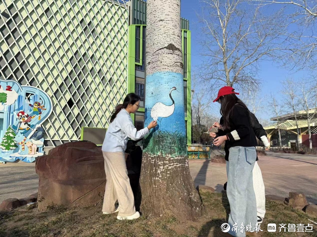 当“糖糖”忙着送福时,整个园区也悄然换上了节日盛装。作为 “暖冬奇遇节” 的核心环节,一场别开生面的“树衣大赛”让冬天的树木成为了艺术创作的画布。来自全省高校的年轻创意与景区员工的奇思妙想相互碰撞,为景区内的树木量身打造了风格各异的“冬装”。