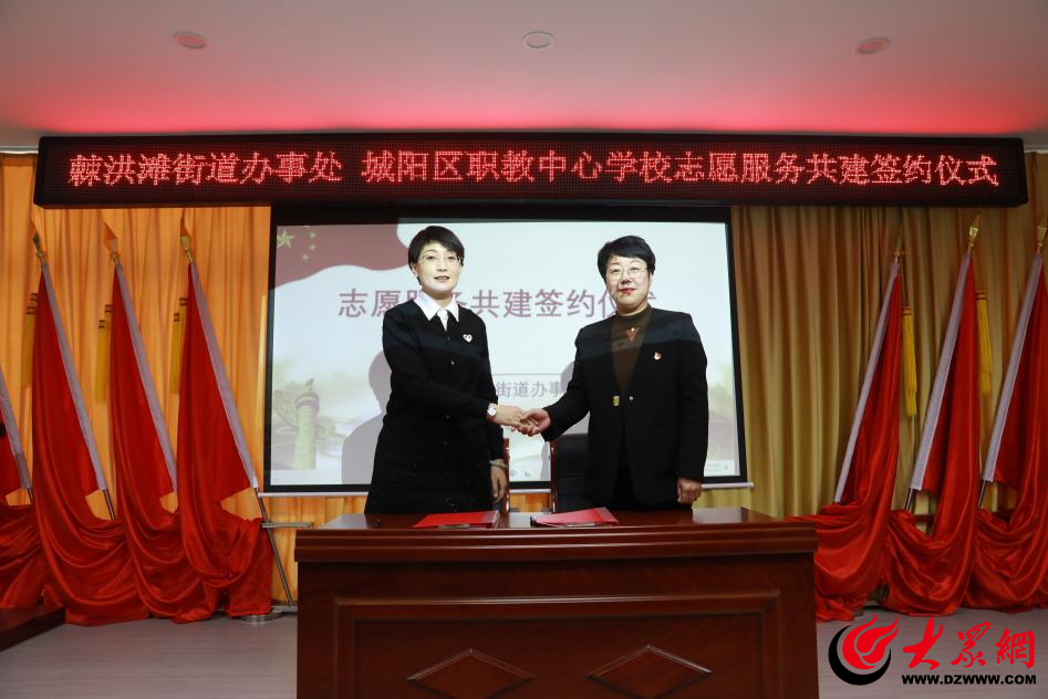 签约仪式上,棘洪滩街道相关负责人与城阳区职教中心学校代表共同签署志愿服务共建协议。双方明确,将以此次合作为纽带,充分发挥社区场地资源优势与学校专业师资、学生志愿力量,围绕文化传承、技能普及、便民服务等领域,打造常态化、专业化的文明实践志愿服务体系,让志愿服务扎根社区、惠及群众,为基层治理注入新活力。签约现场掌声阵阵,标志着校社携手推进文明实践、深化志愿服务的全新篇章正式开启。