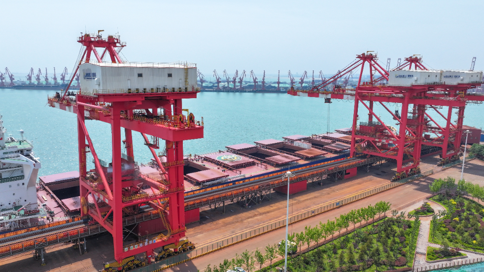 走进日照港岚山港区南二突堤作业现场,绿色低碳发展理念贯穿生产各环节,自动化卸船机精准抓放货物,绿植种在大机下,货物流转不见货;流程皮带输送系统串联起泊位与堆场,与自动化装车楼高效联动;投用智能岸电系统,靠港船舶实现岸基供电;卸船机、堆取料机等大型设备及辅助设备100%电力驱动等。