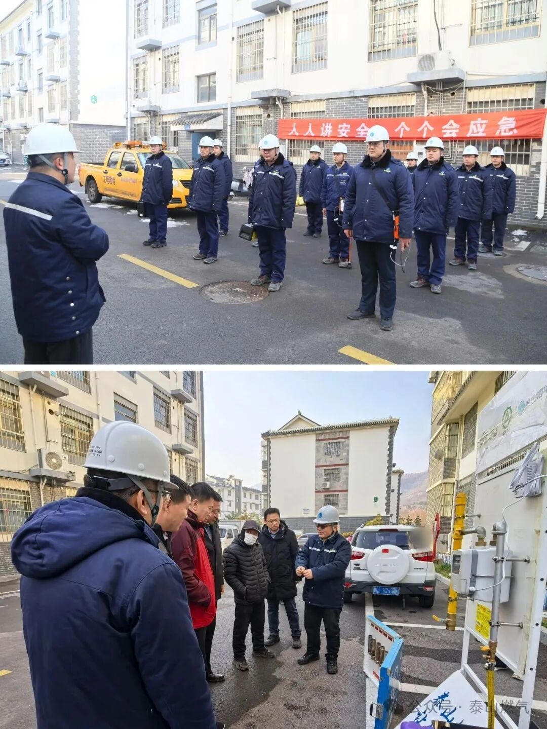 为进一步强化社会公众冬季燃气安全意识,完善燃气突发事件应急处置流程,提升应急响应与协同能力。近日,泰山燃气集团所属泰安泰山港华燃气有限公司在泰山景区规划建设部、大津口乡政府的统一部署下,联合艾洼社区共同开展居民用户燃气突发事件应急抢险演练。泰山景区规划建设部副部长孙灿瑞、大津口乡政府副乡长宋广国到场观摩指导。
