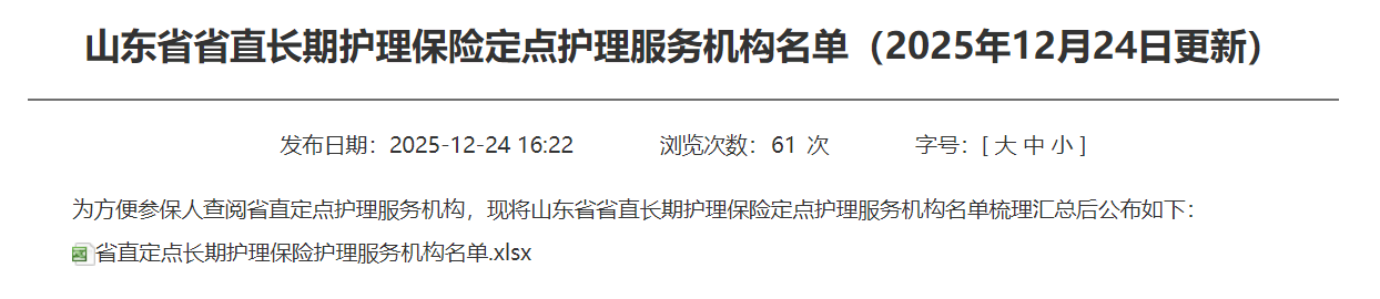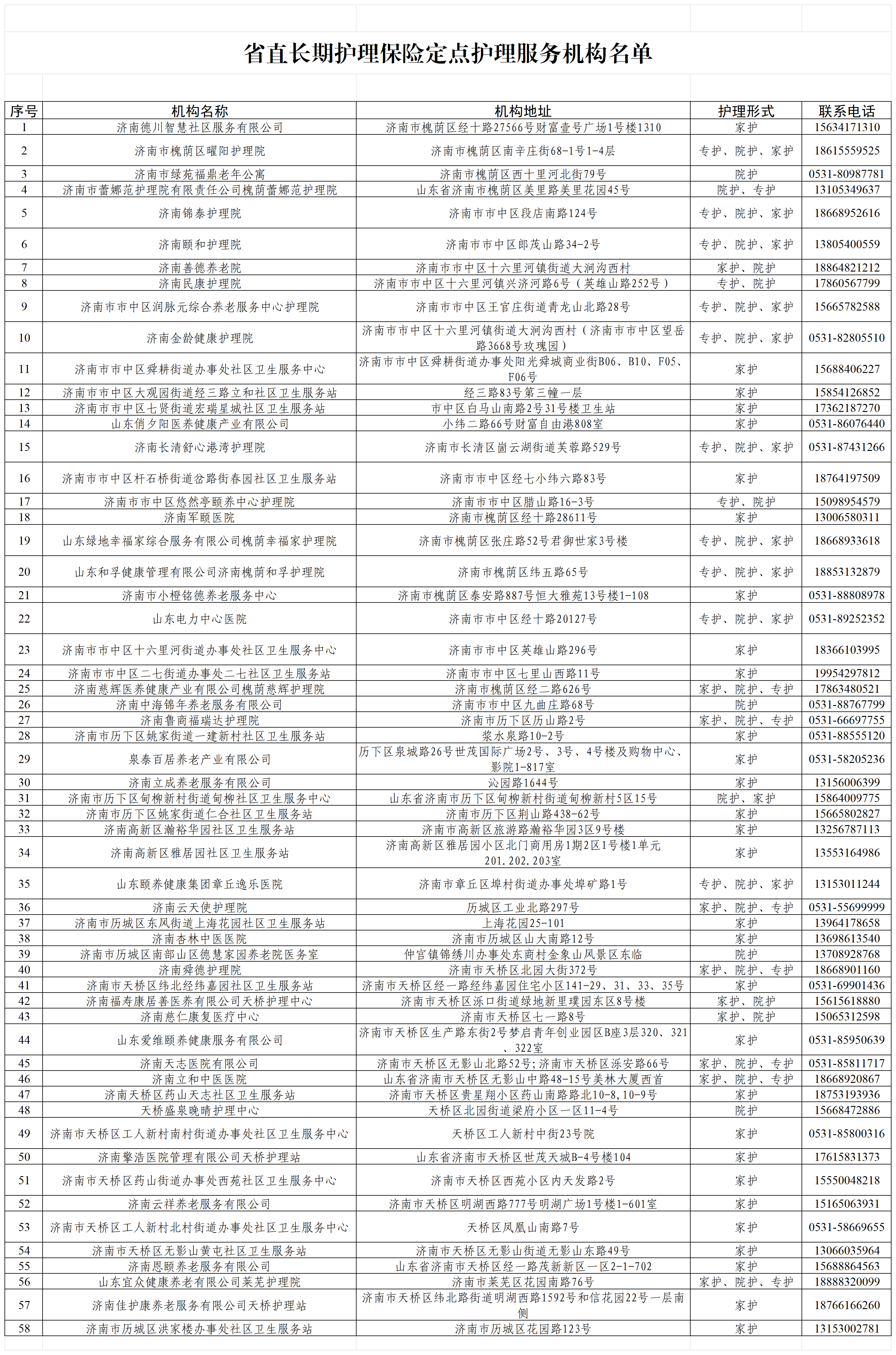 12月24日,山东省医疗保障局网站发布山东省省直长期护理保险定点护理服务机构名单,共58家机构入选。为方便参保人查阅省直定点护理服务机构,现将山东省省直长期护理保险定点护理服务机构名单梳理汇总后公布如下: △扫描二维码查看文档(大众新闻记者刘兵曲祎茹整合)