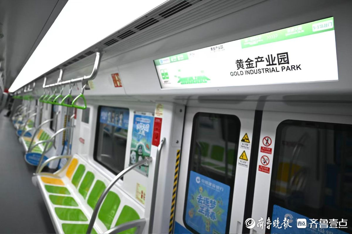 12月26日下午,齐鲁晚报·齐鲁壹点记者提前探营济南地铁4号线,4号线车辆已经来回空运,静候开通运营。记者看到,车厢内座椅主打色为绿色,爱心专座为黄色,扶手、指示牌等都是绿色,尽显青春活力。同时车厢内还配有同色系的充电口,同色系轮椅固定带,十分温馨。齐鲁晚报·齐鲁壹点记者王媛
