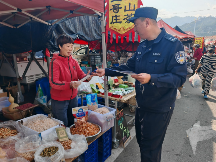 为将反诈知识送达更多社区居民,特别是中老年群体,日前,王哥庄派出所利用辖区大集人流密集的时机,组织警力开展集中宣传。