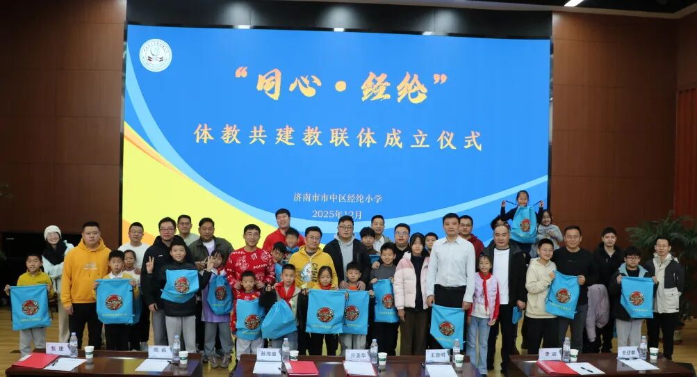 冬阳送暖,孕育希望。日前,济南市市中区经纶小学举行以“聚力体教融合,共筑健康未来”为主题的“同心·经纶”体教共建教联体成立仪式暨2025家长开放日系列活动。此次活动汇聚了各级教育体育主管部门领导、高校及专业体校代表、行业协会领导、知名俱乐部负责人、家长及学生代表等近两百人,共同见证了经纶小学在深化体教融合、构建家校社协同育人新格局征程上的里程碑时刻。