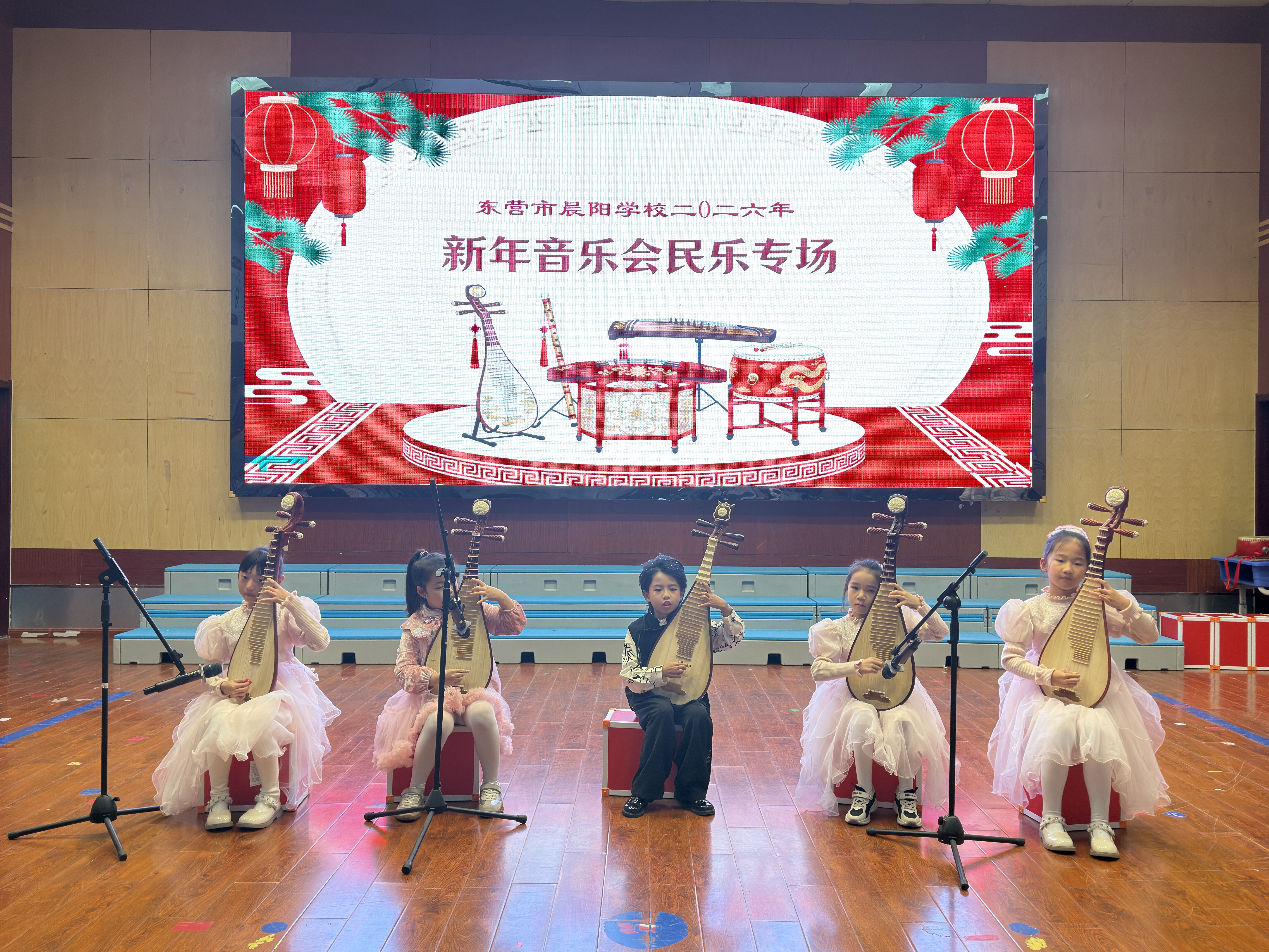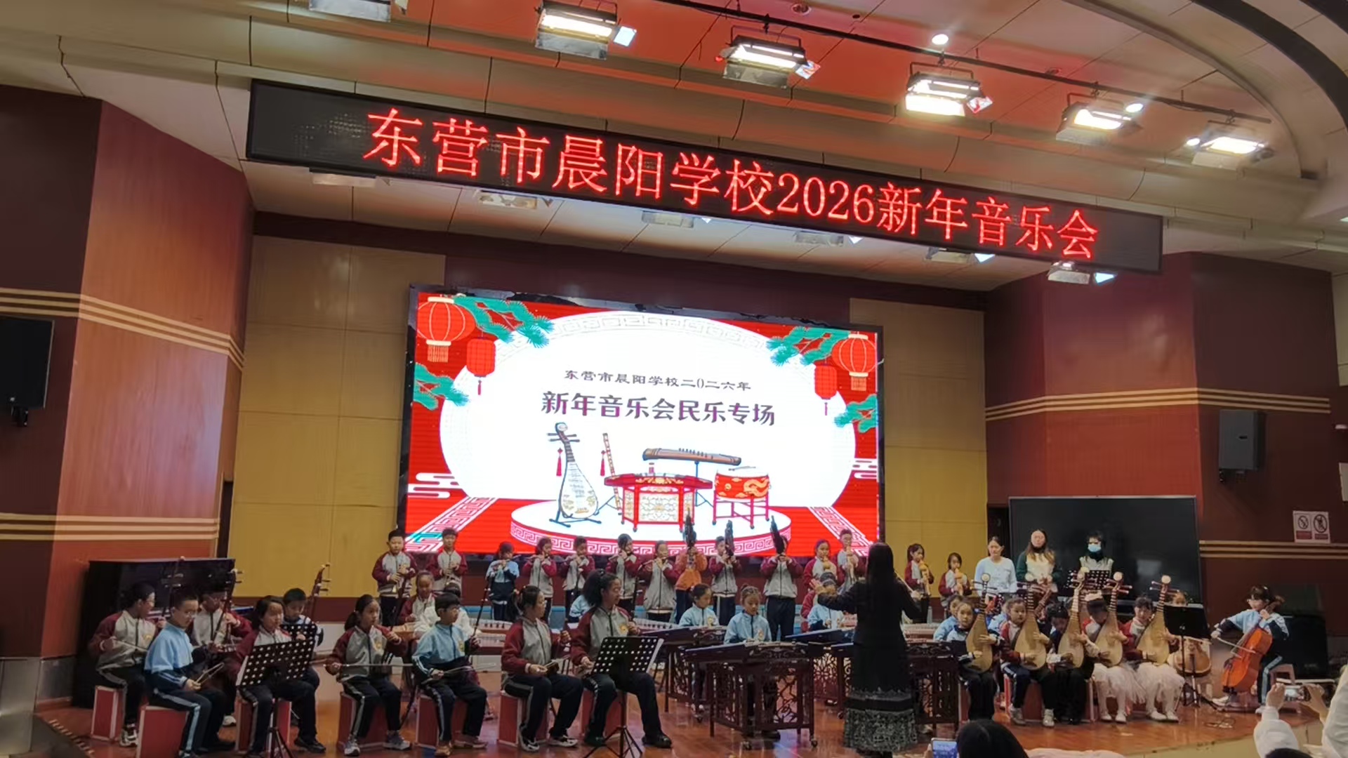 12月25日下午,东营市晨阳学校小学部举办“音为梦响·乐韵迎春”2026民族管弦乐新年音乐会。民乐合奏《金蛇狂舞》、扬琴三重奏《喜讯》等传统曲目韵味十足。