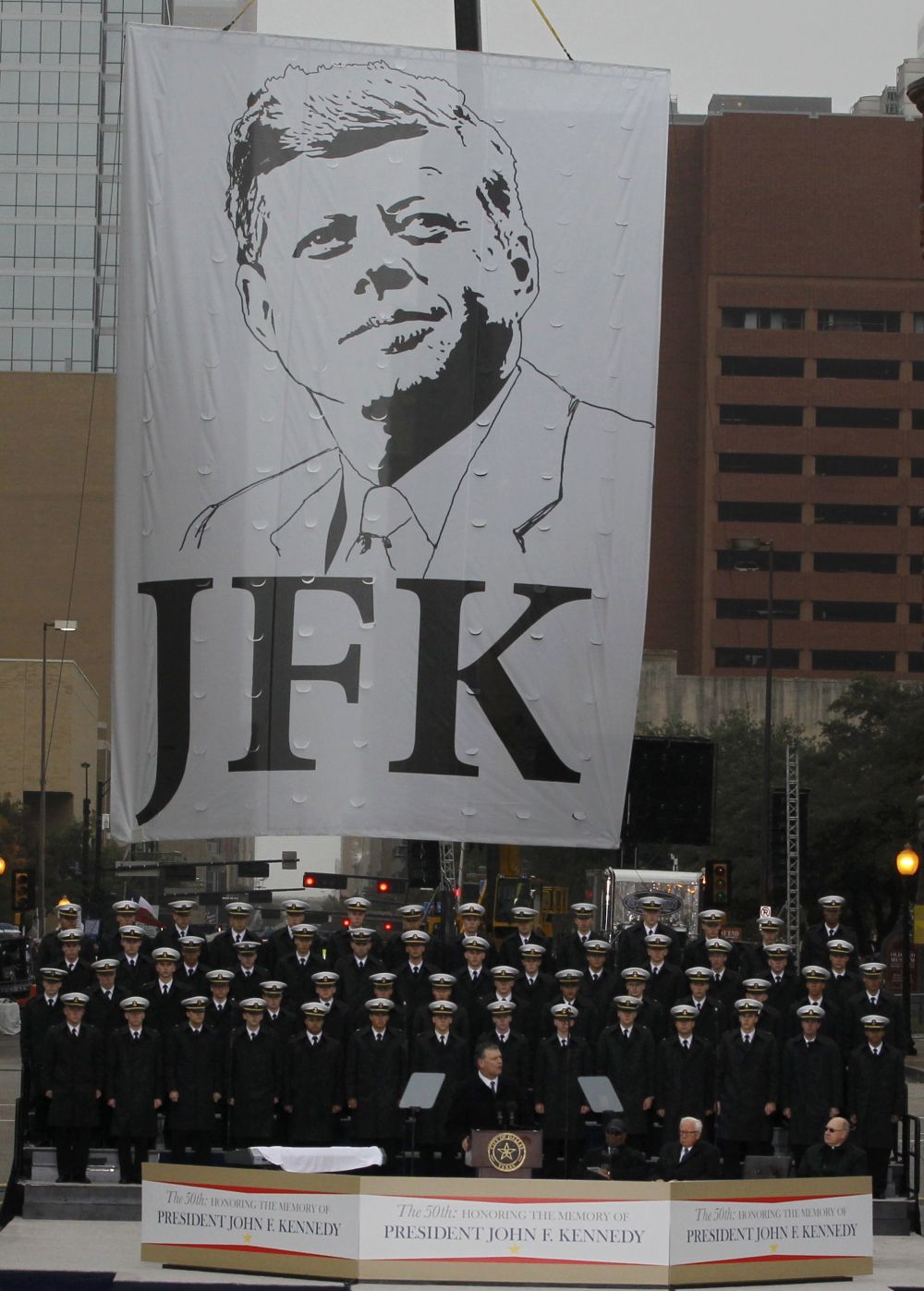 2013年11月22日,在美国达拉斯,美国海军军官学校男子合唱团参加肯尼迪遇刺50周年纪念活动。新华社